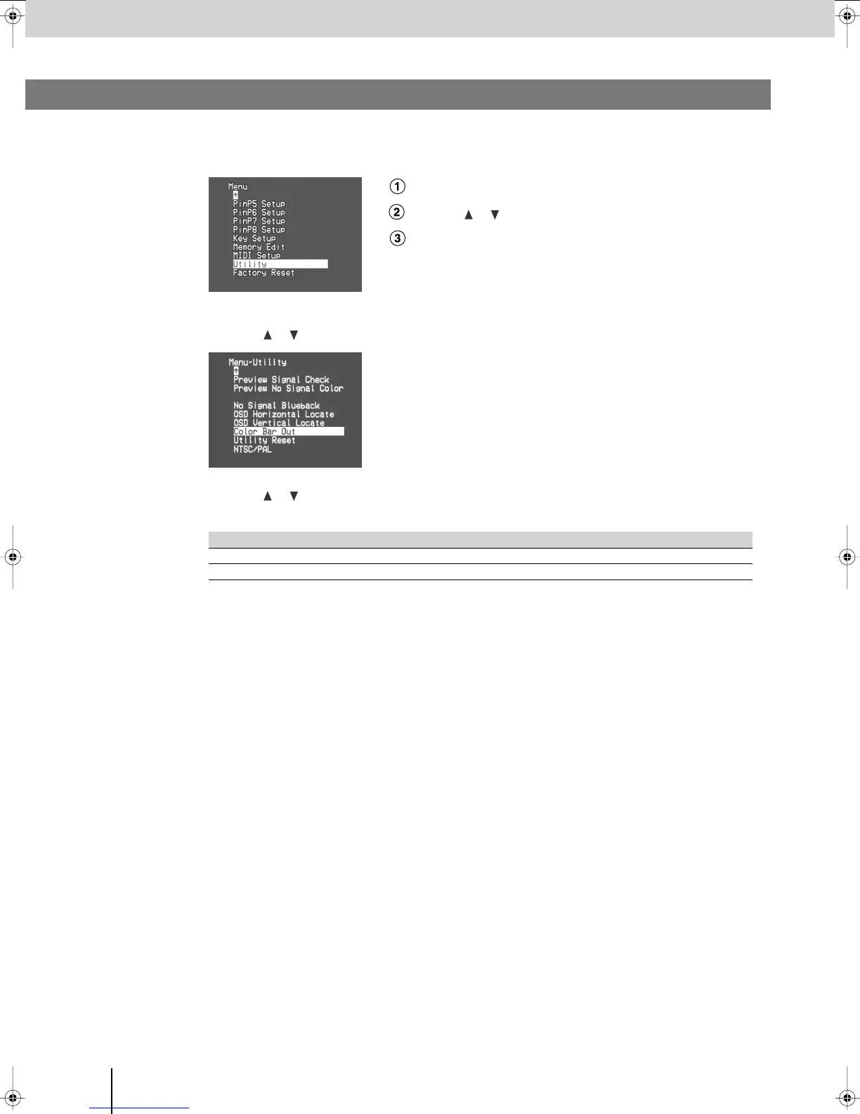 buttons to choose “Color Bar Out,” and press the [ENTER] button.