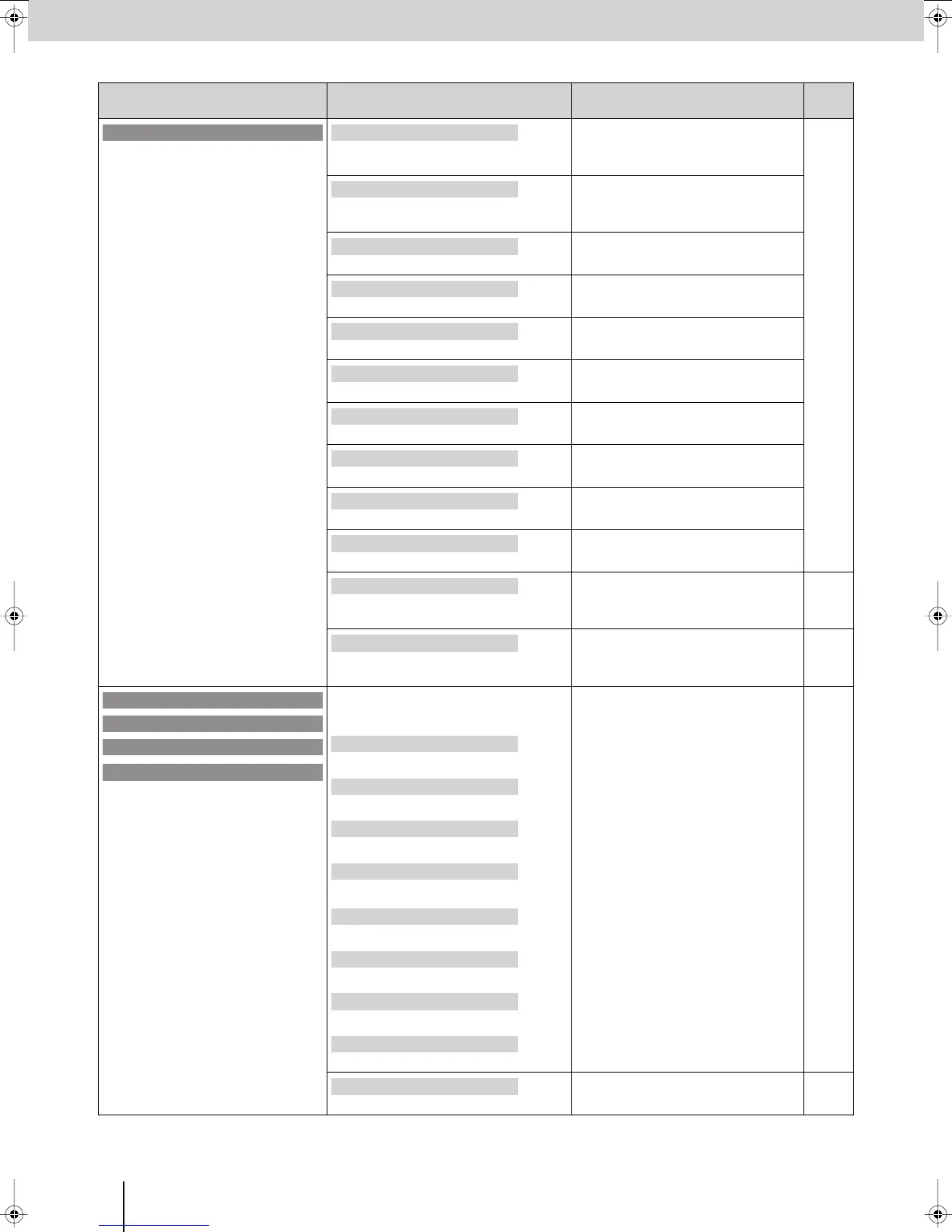 (The factory setting is printed in bold characters.)