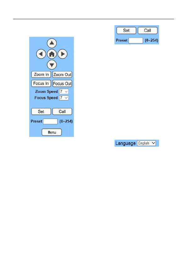 PTZ direction control box: Up, down, left,