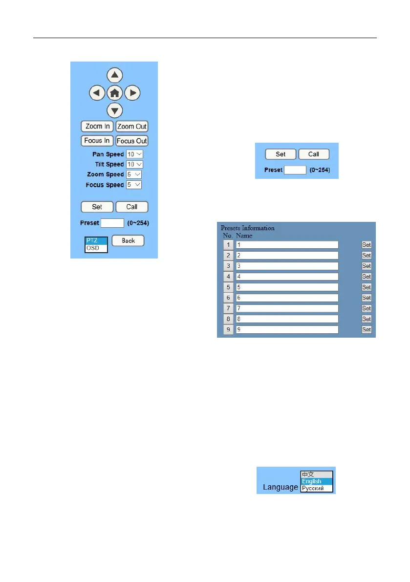 6) PTZ/OSD Dropdown