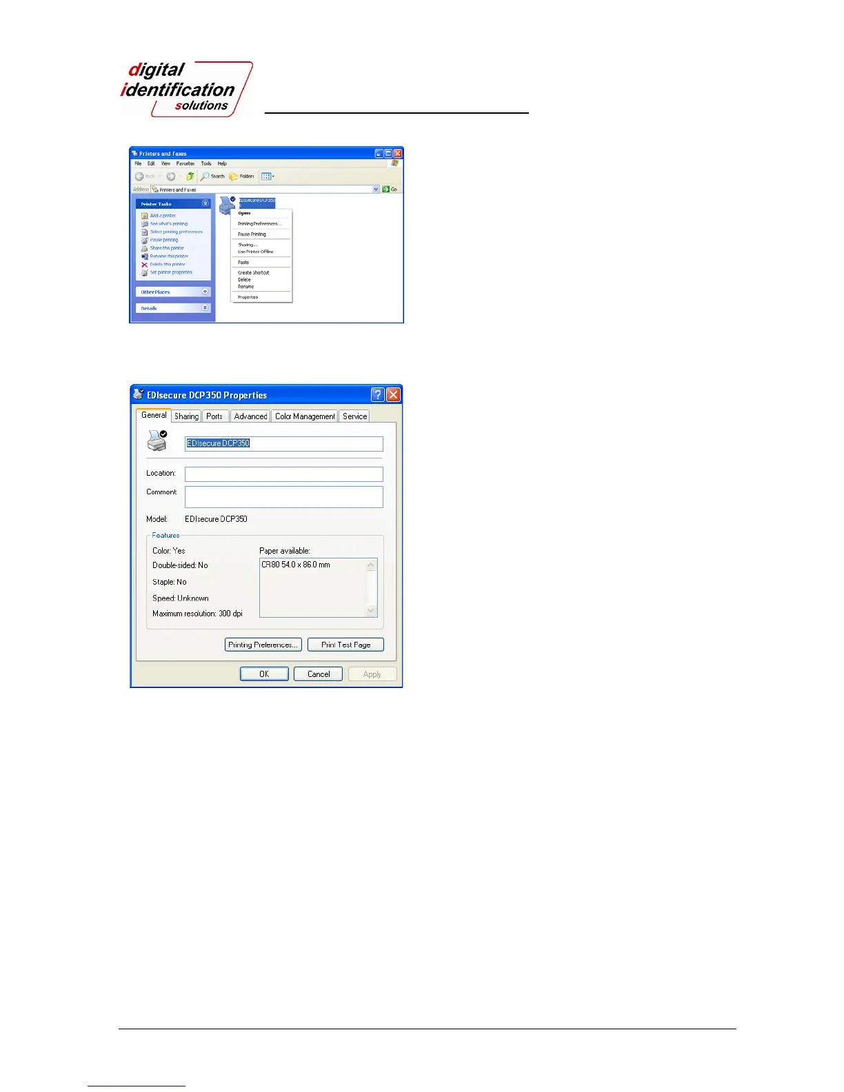 DCP350” is generated in Printers