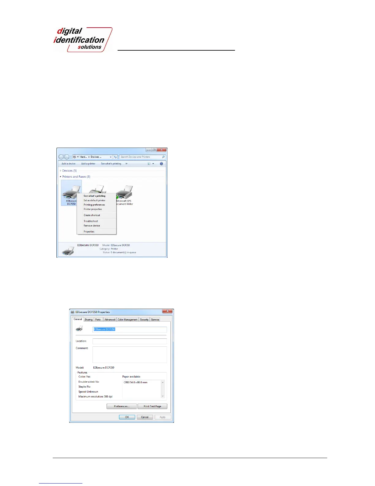 DCP 350 Card Printer”. Click “Properties”. For Windows 7, please