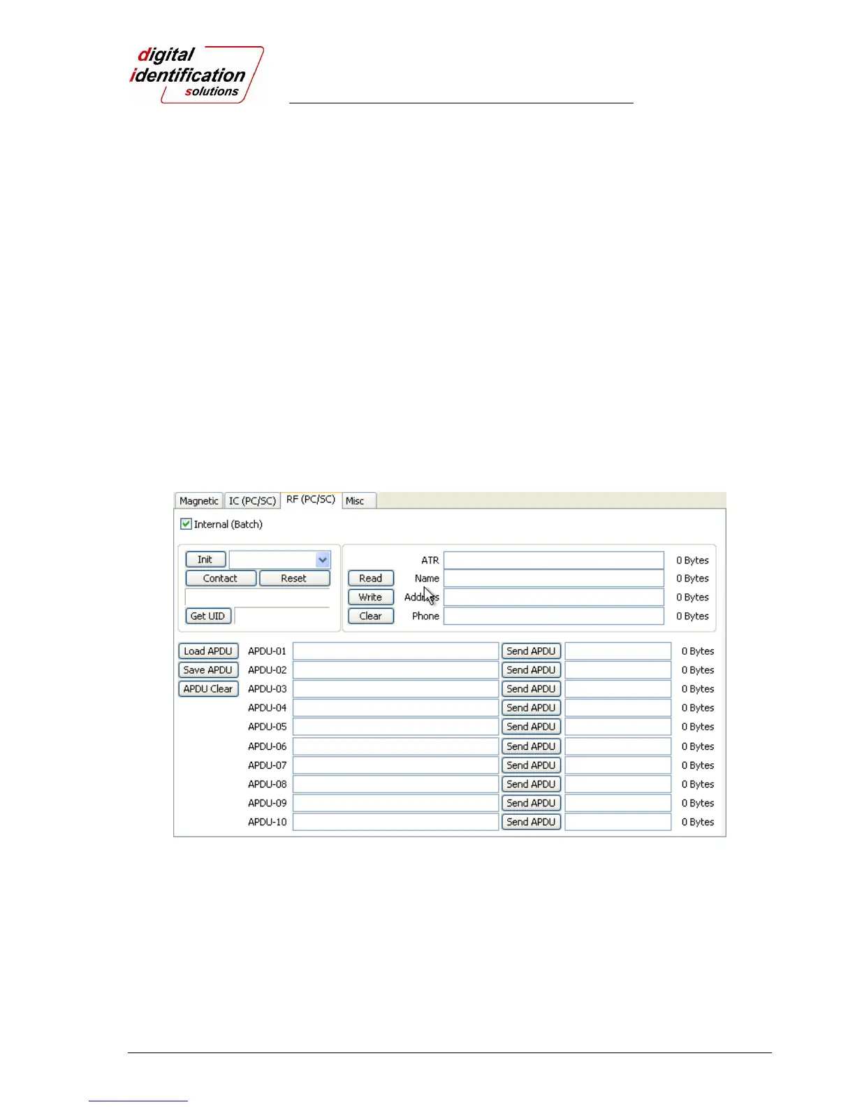 “Clear” is to clear the displayed data (ATR, Name, Address and Phone).