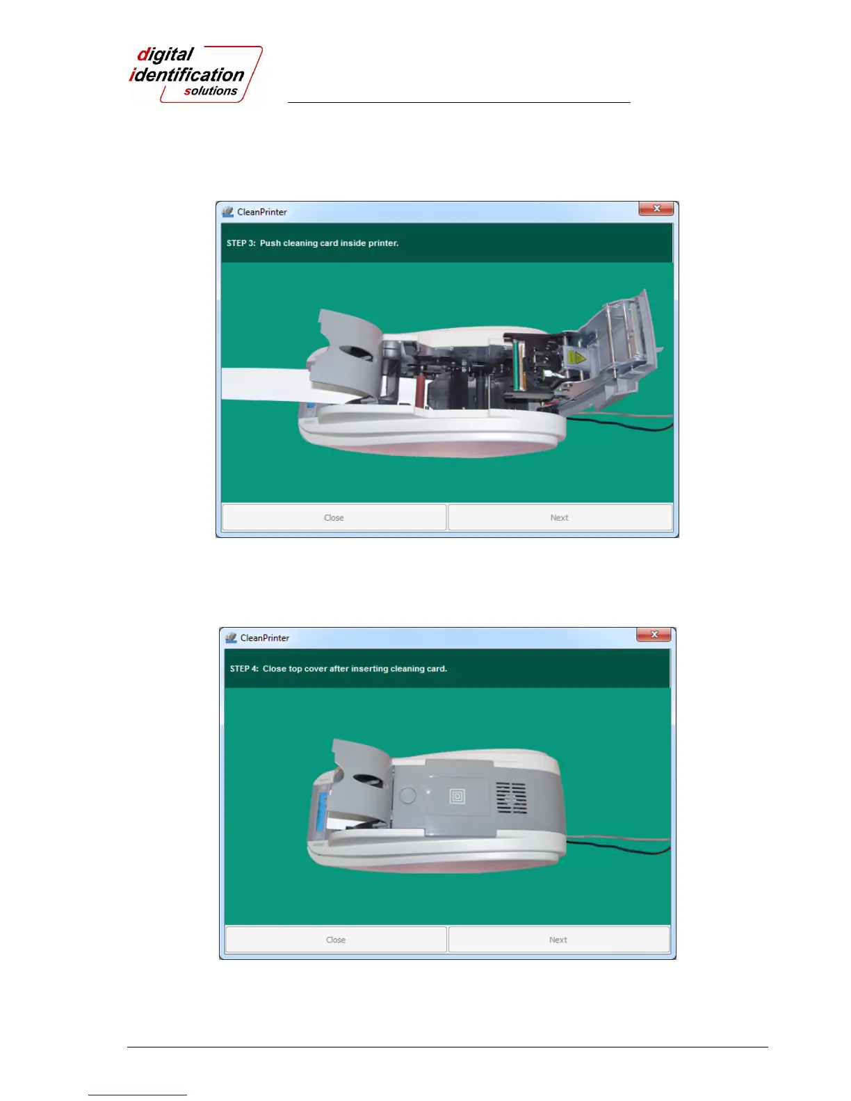 cover is closed, cleaning card will be moving back and forth to clean.