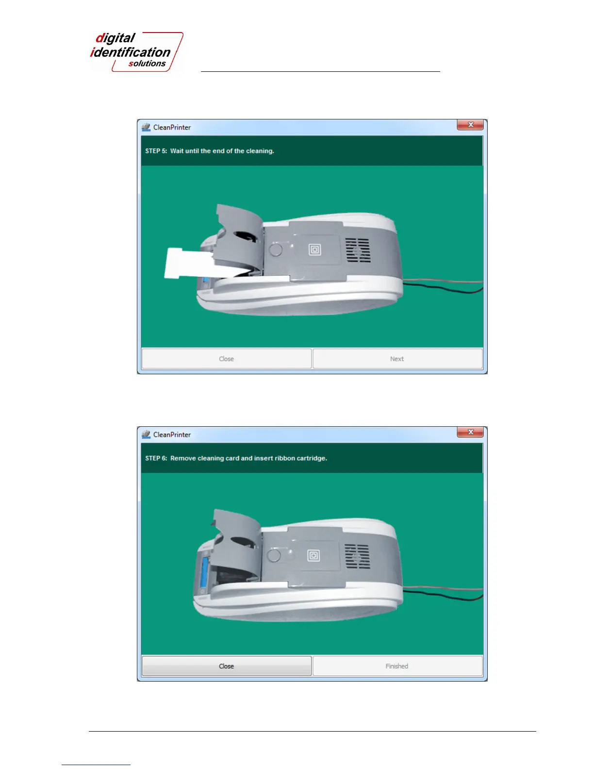 Step 6. Remove the exclusive cleaning card and install ribbon cartridge into the printer.