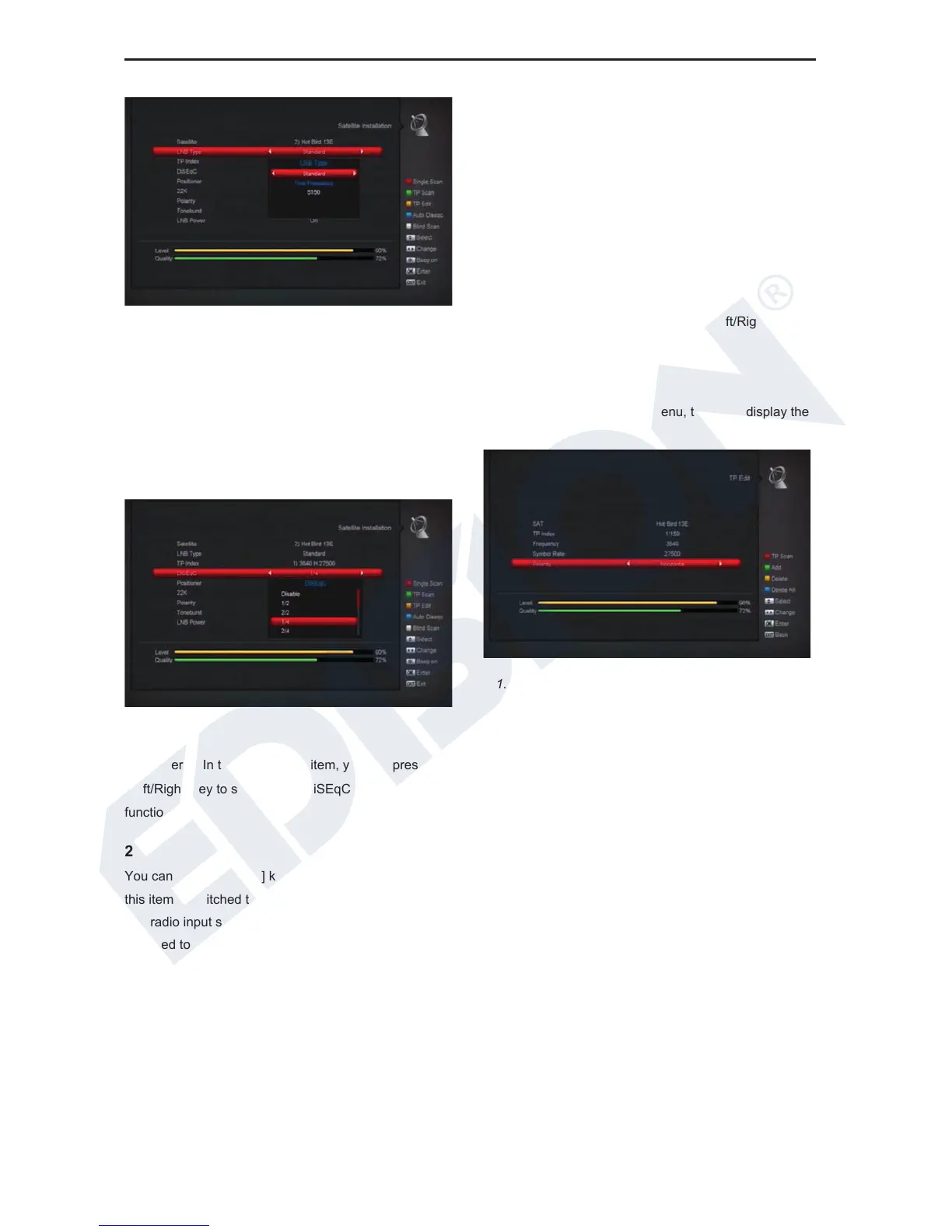 [Left/Right] key to switch “Off / DiSEqC 1.2 / USALS”