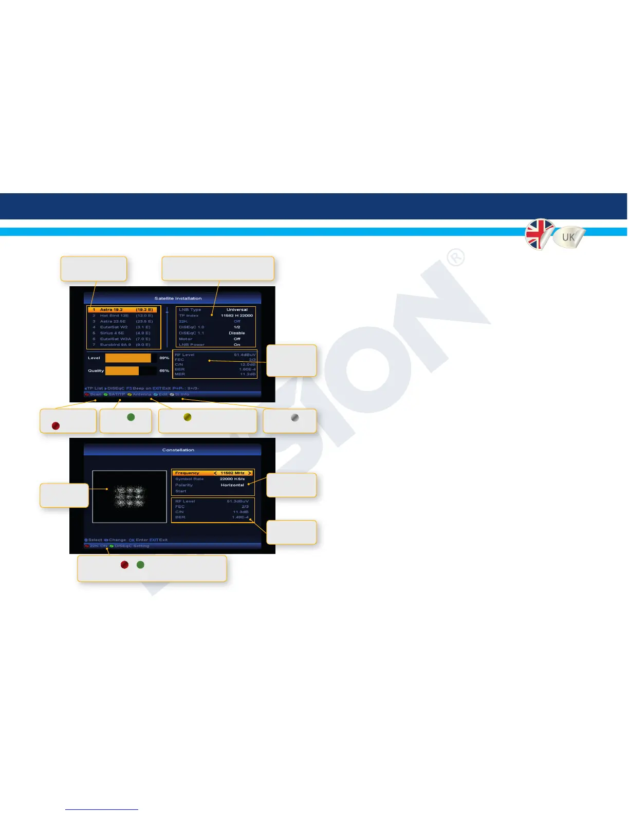 Satellite Installation, here you can congure everything regarding