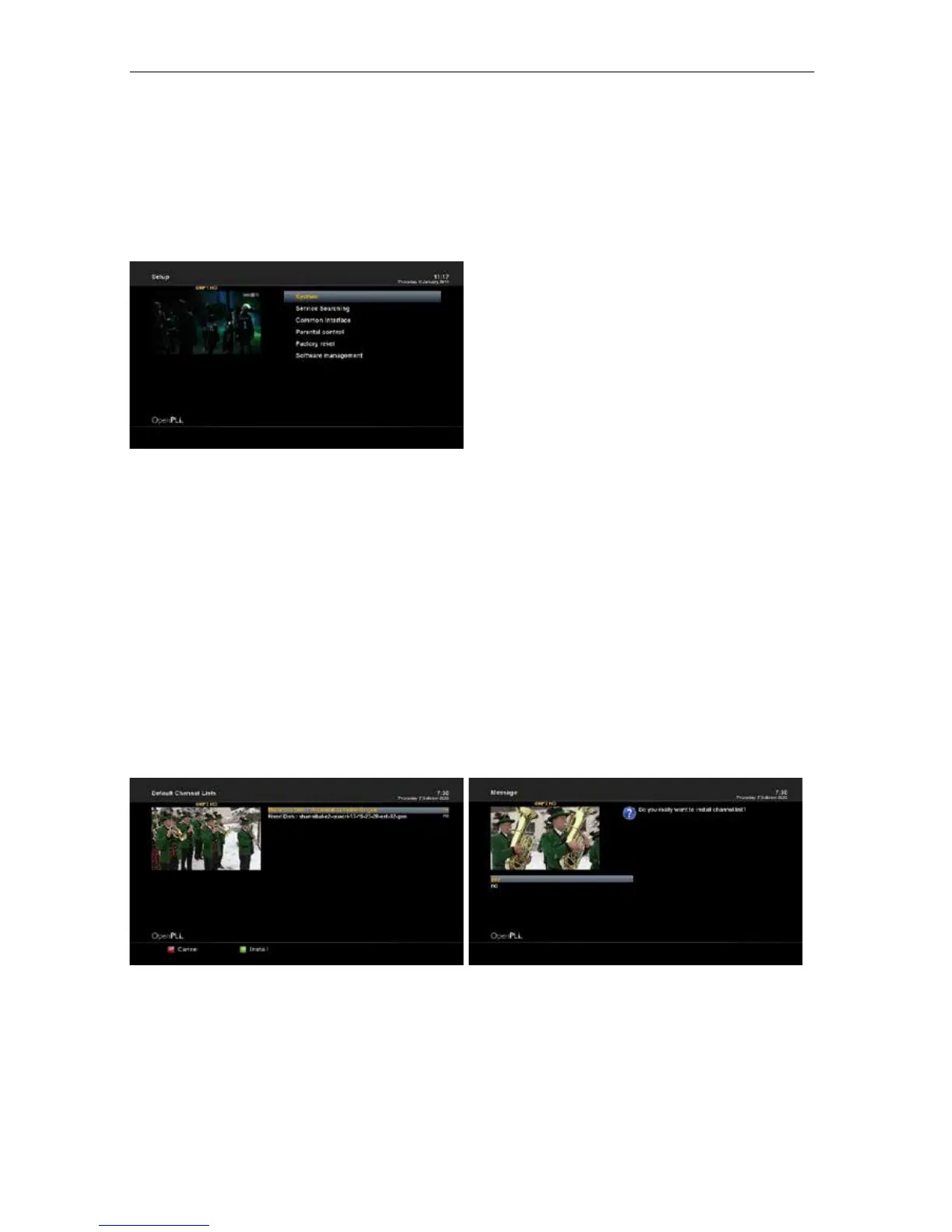 : Here you set up the tuners of your Optimuss OS and run channel scanning automatically or manually.
