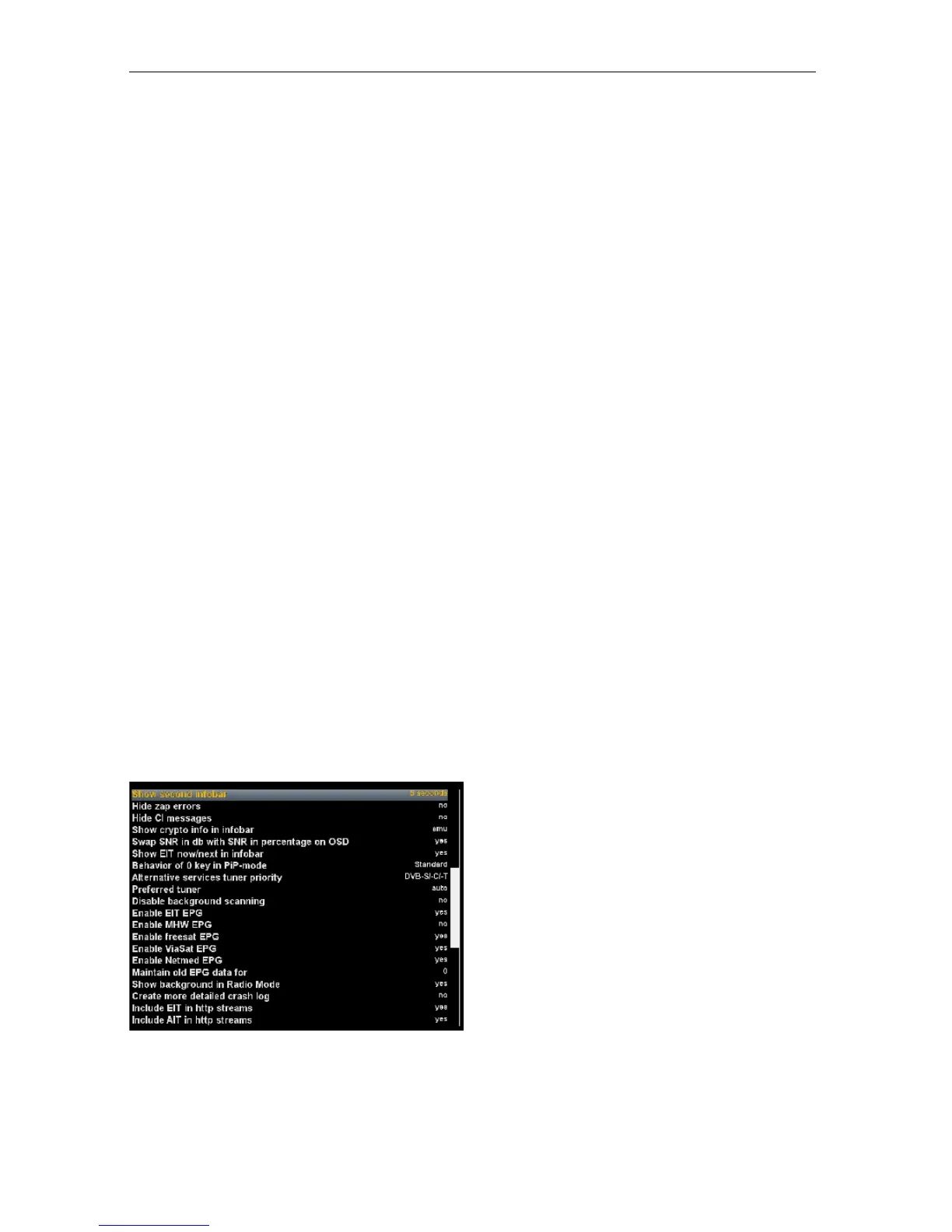 : If set to “yes” the inforbar will be displayed when changing channels.