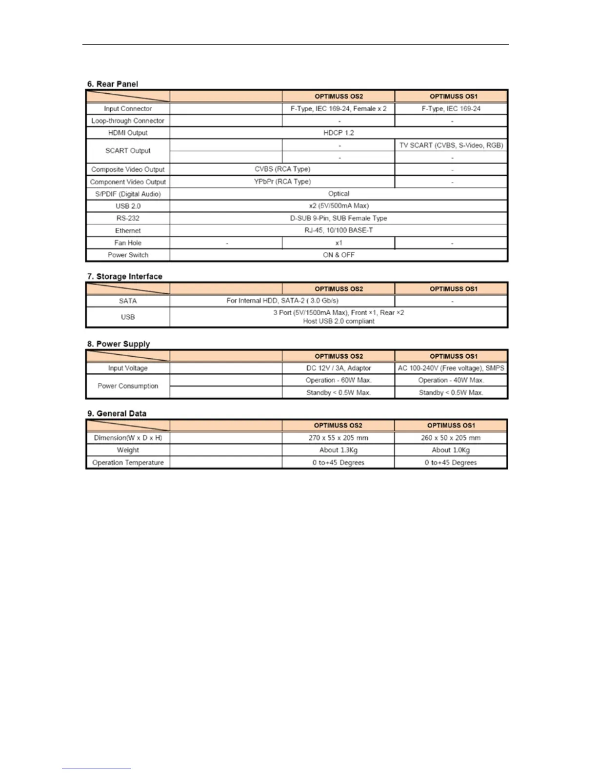 Edision OPTIMUSS OS1 - Rear Panel; Storage Interface; Power Supply; General Data