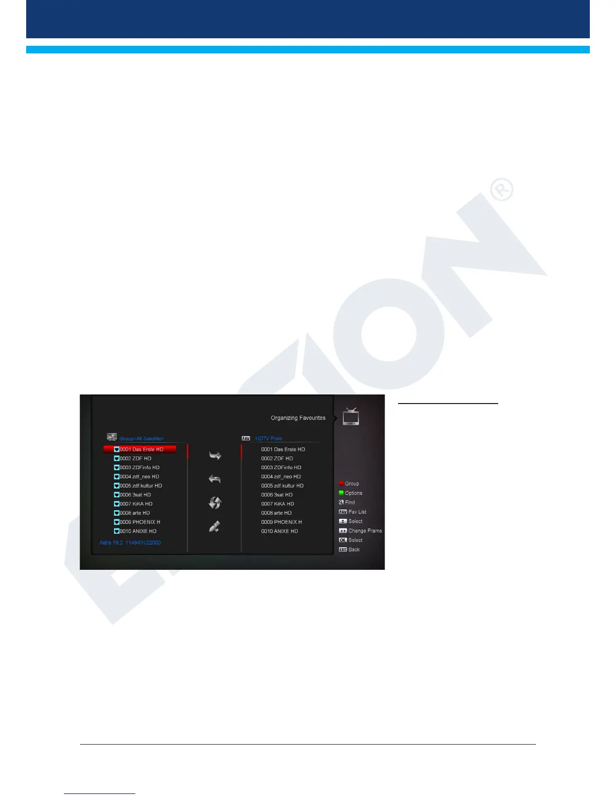 1. Place the cursor (yellow bar) in the channel list, on the channel which you want to rename.