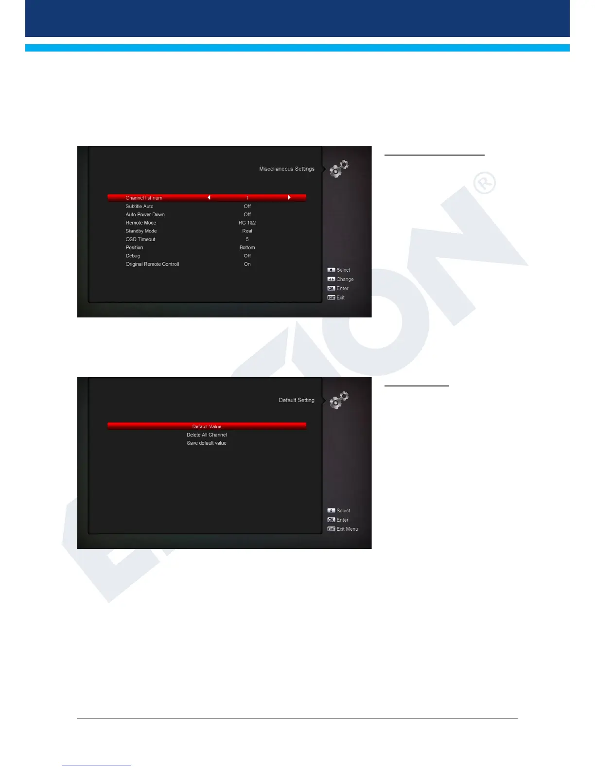 You can exit the 'Factory Default' menu pressing the EXIT button.