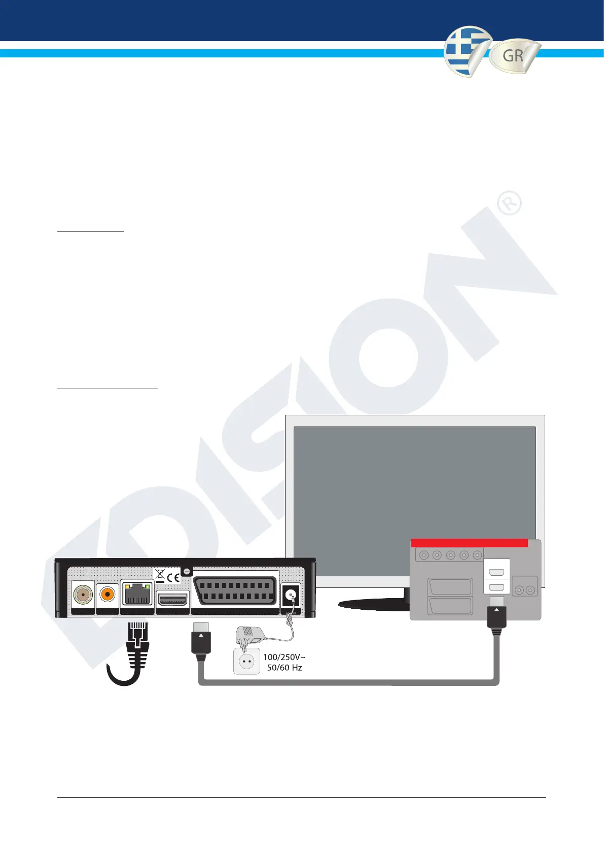 • Η σύνδεση με την τηλεόραση μπορεί να γίνει μέσω HDMI, SCART, 3RCA, με αντίστοιχο καλώδιο από την έξοδο σήματος