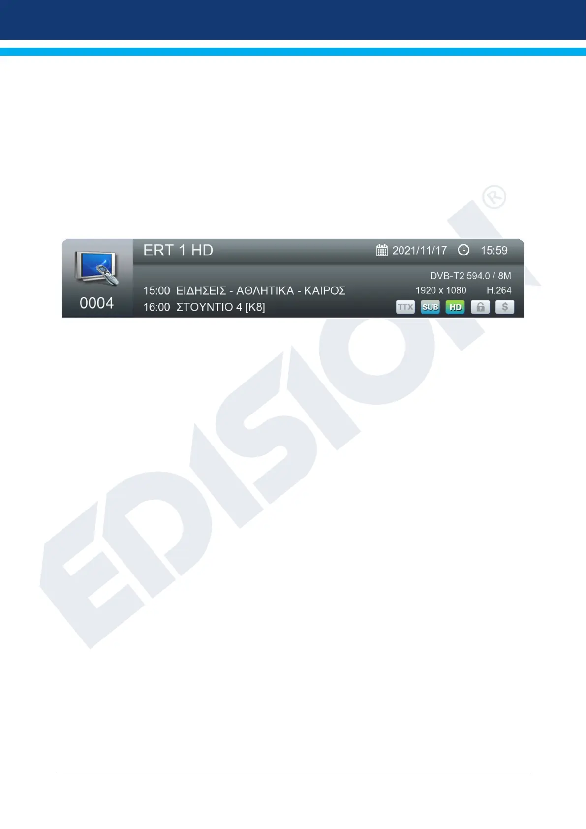 - TTX: displays if there are Videotext/subtitles for the current show