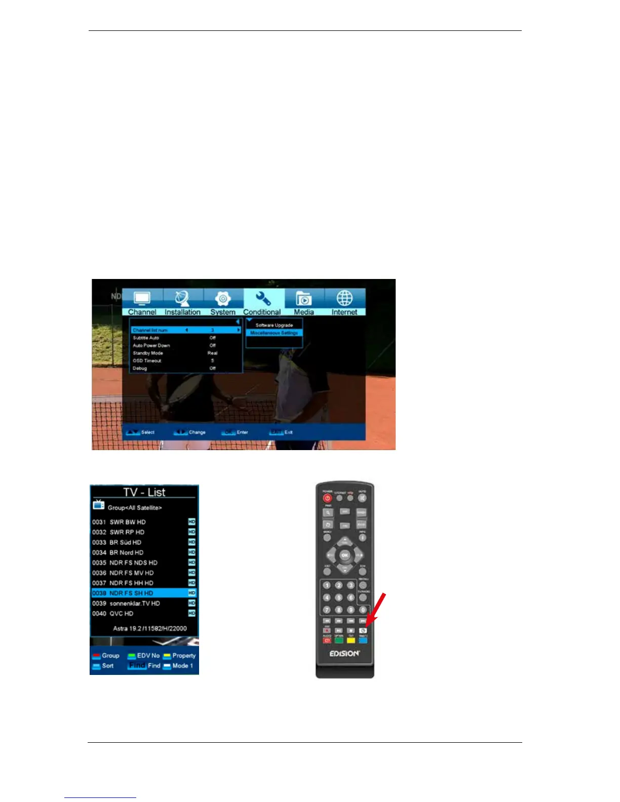 TV list no.: Set here the way you want the program list to be displayed. There are
