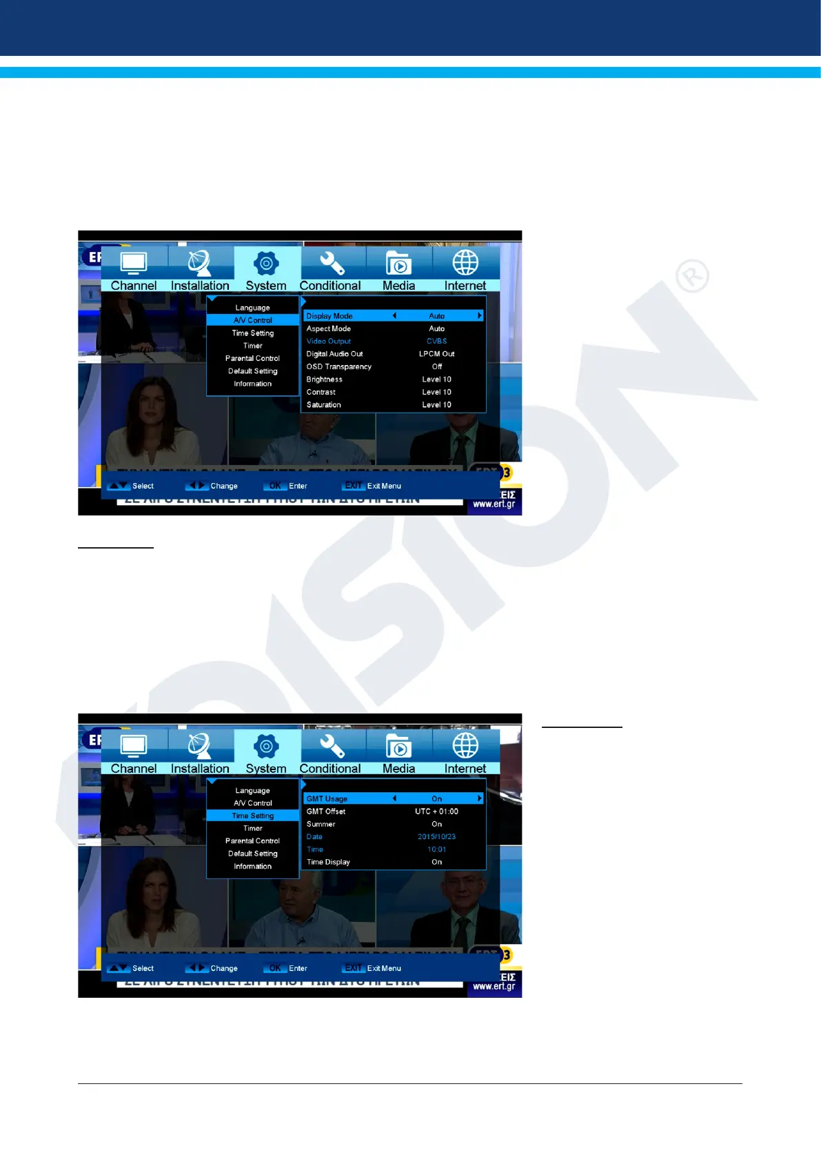 in this item, accessing the menu is only possible via PIN code. Channel bar,