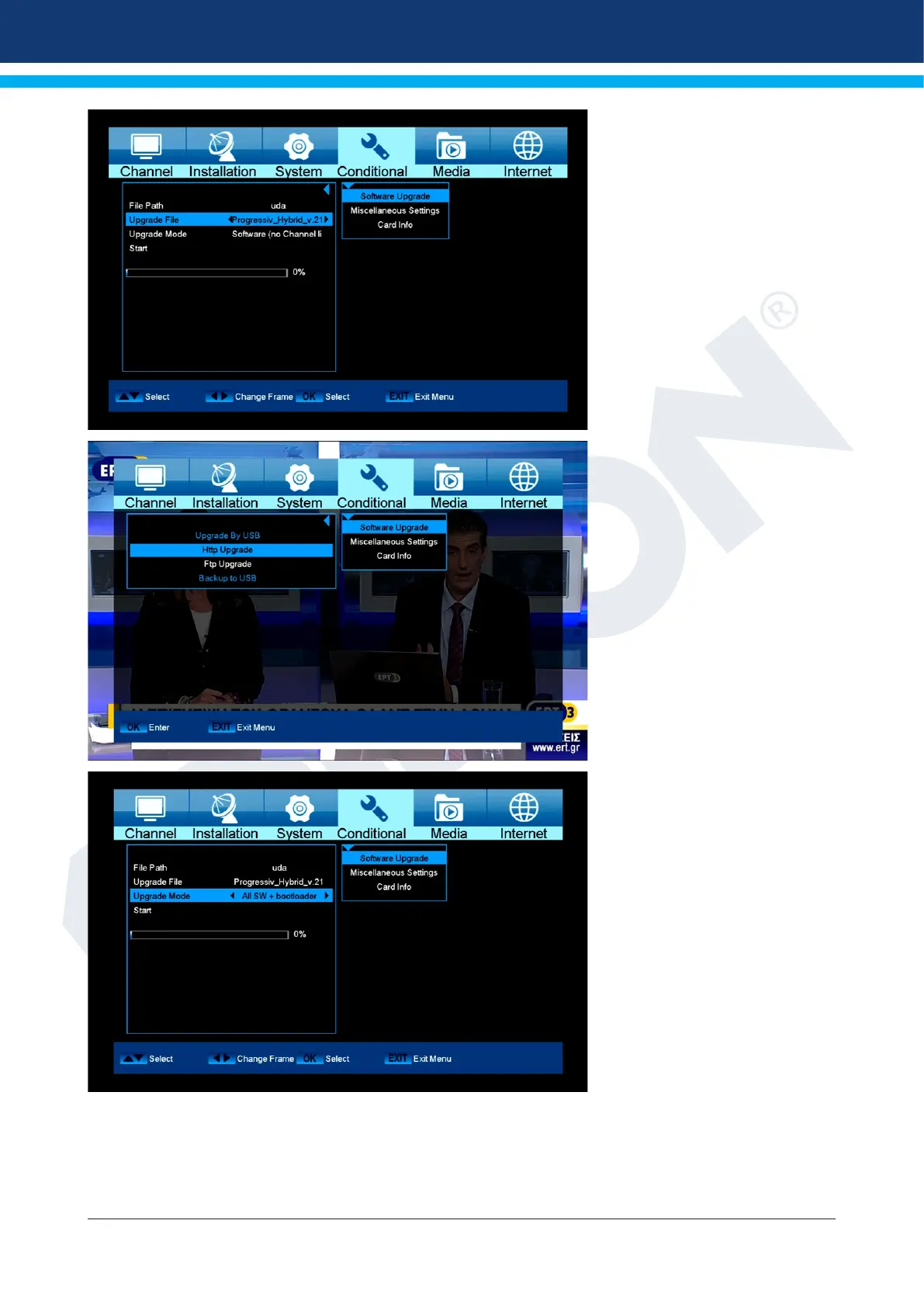 Attention: The software update starts immediately after pressing the OK button and must not be interrupted.