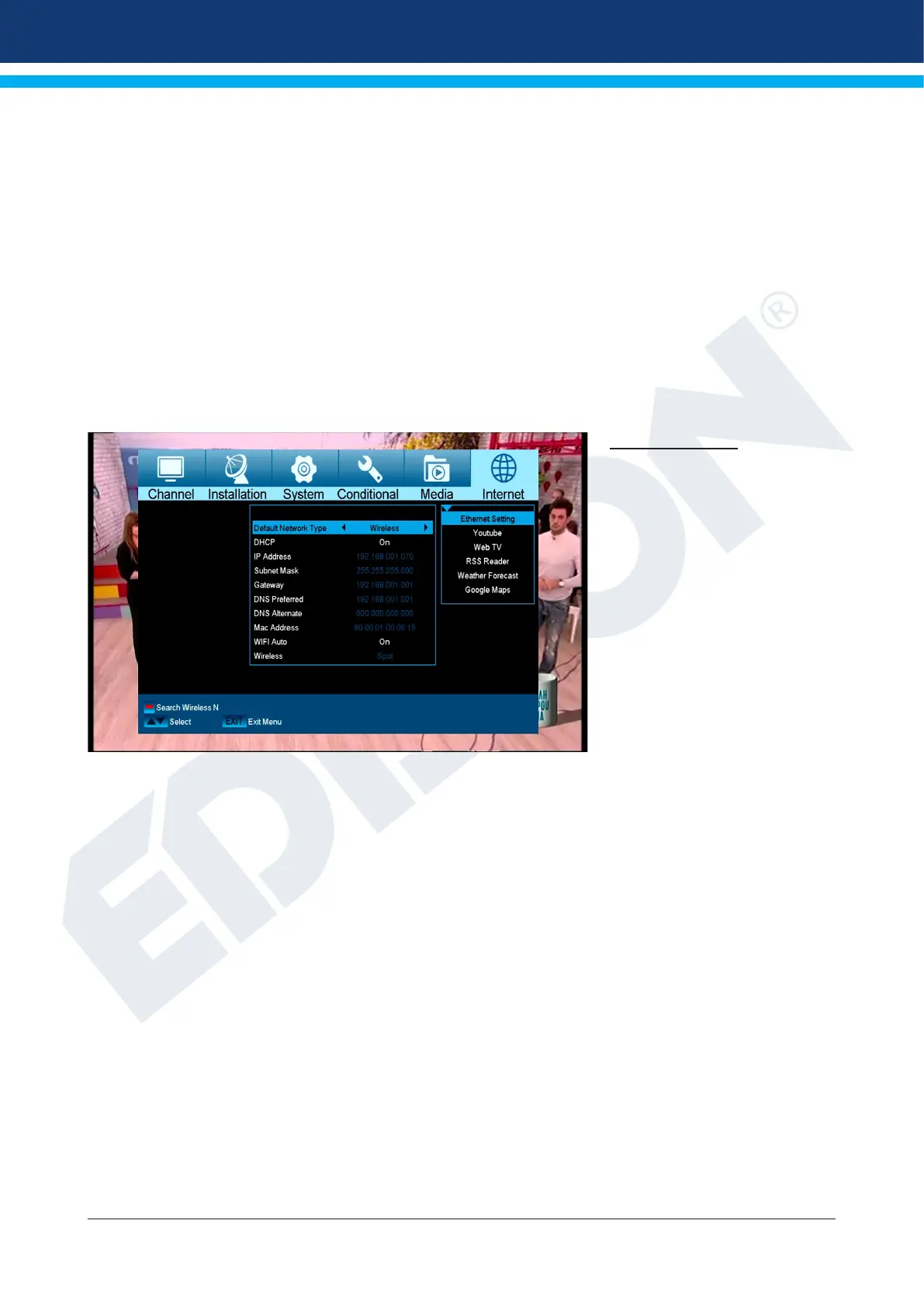 Exit the ‘Network Local Settings’ menu by pressing the EXIT button.