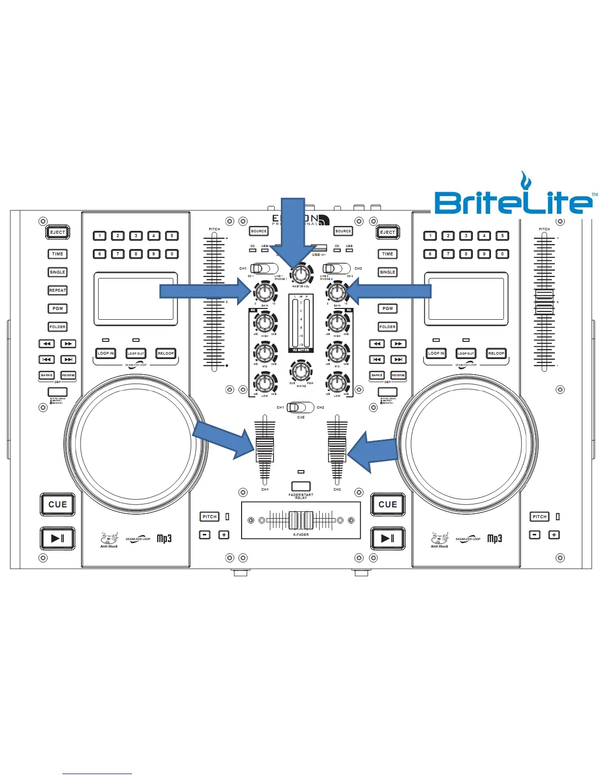 Edison DJ PRO 6100+ - DJ Controller Operation; Channel Volume and Fader Controls