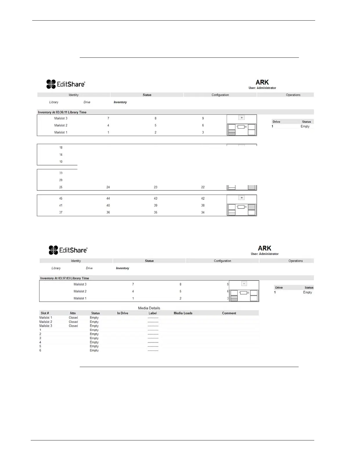 This page provides detailed information about the tape inventory in the library.