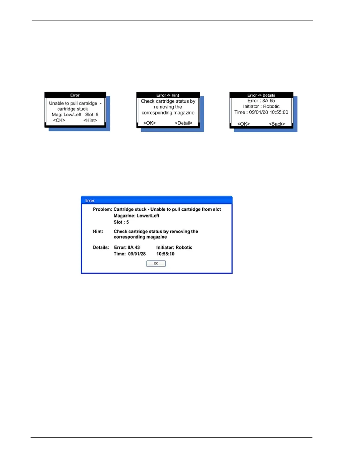 In case of an error or a warning, a popup message appears on the OCP. The information is shown