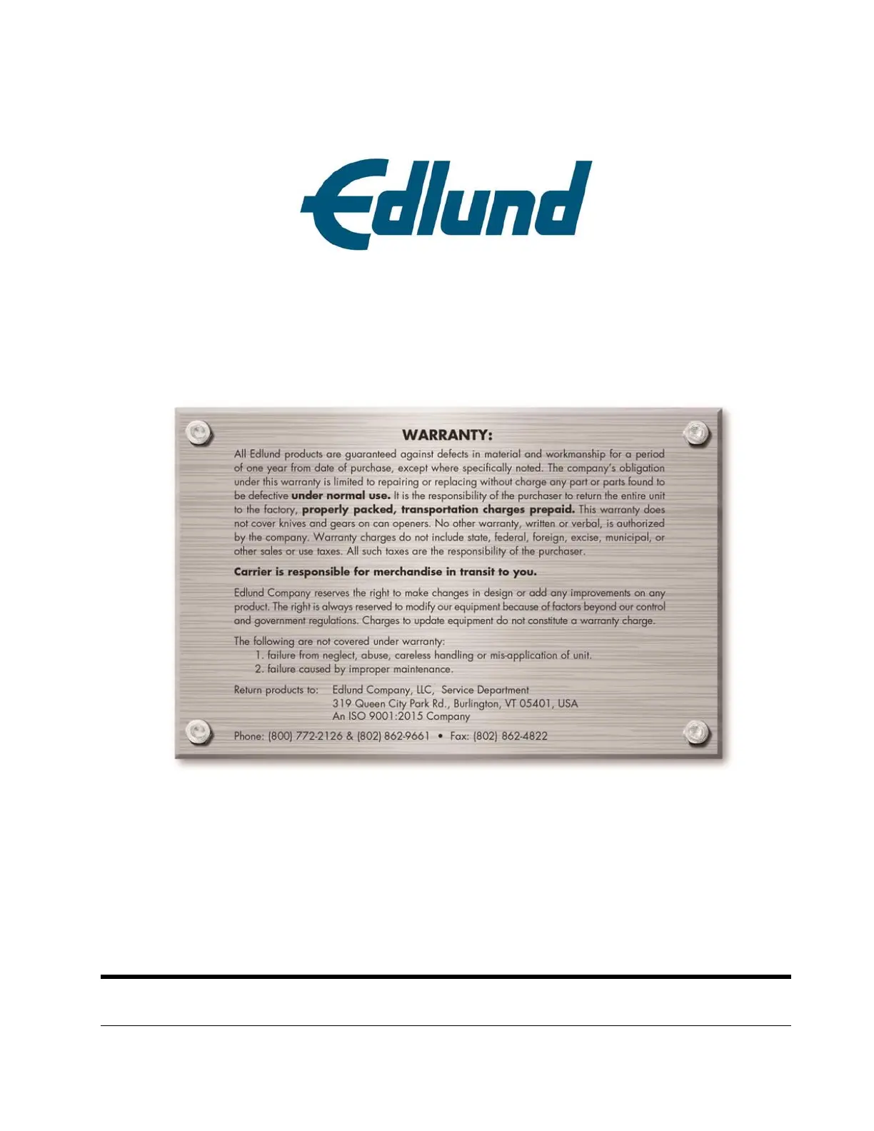 1-800-772-2126 • www.edlundco.com ©2013 Edlund Co., LLC., M101 Rev C