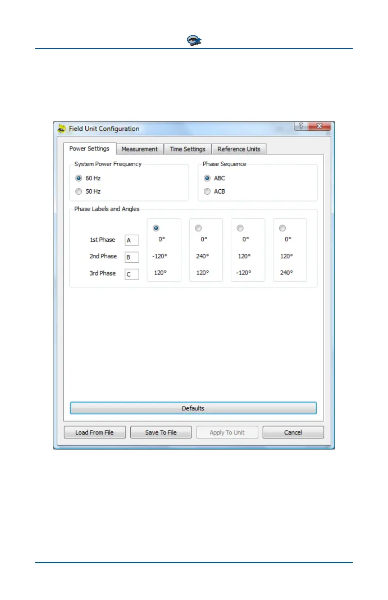 The Phase Settings tab of the PhaseTrakker Utility’s Field Unit Configuration menu