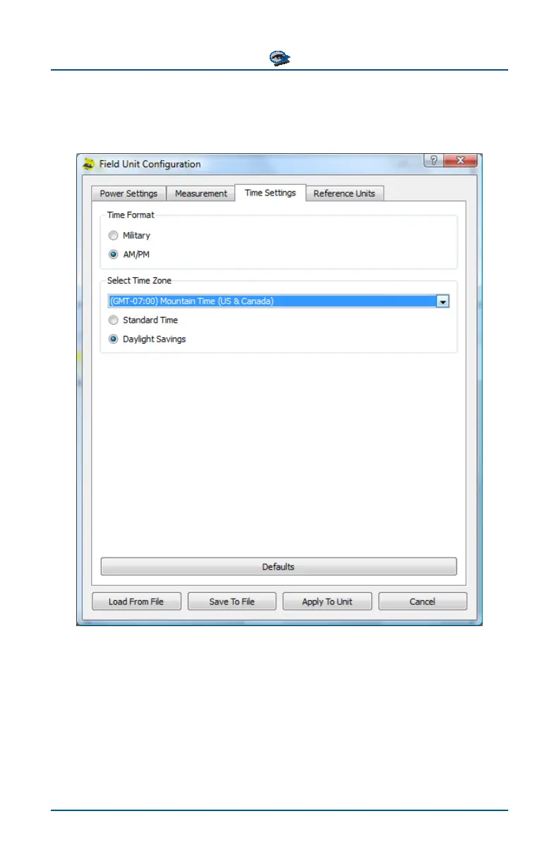 The Time Settings tab of the PhaseTrakker Utility’s Field Unit Configuration menu