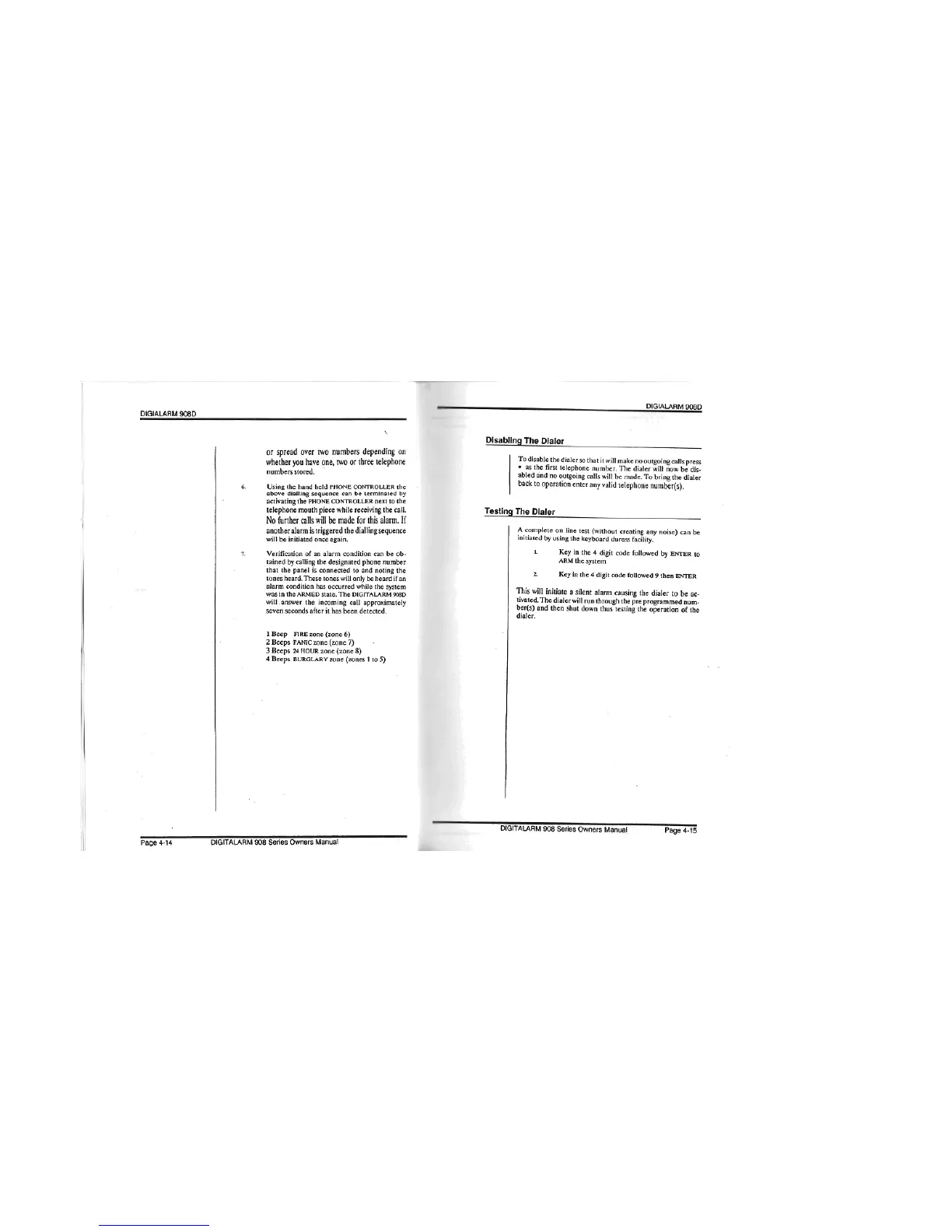 EDM Digitalarm 908 - Disabling the Dialer; Testing the Dialer