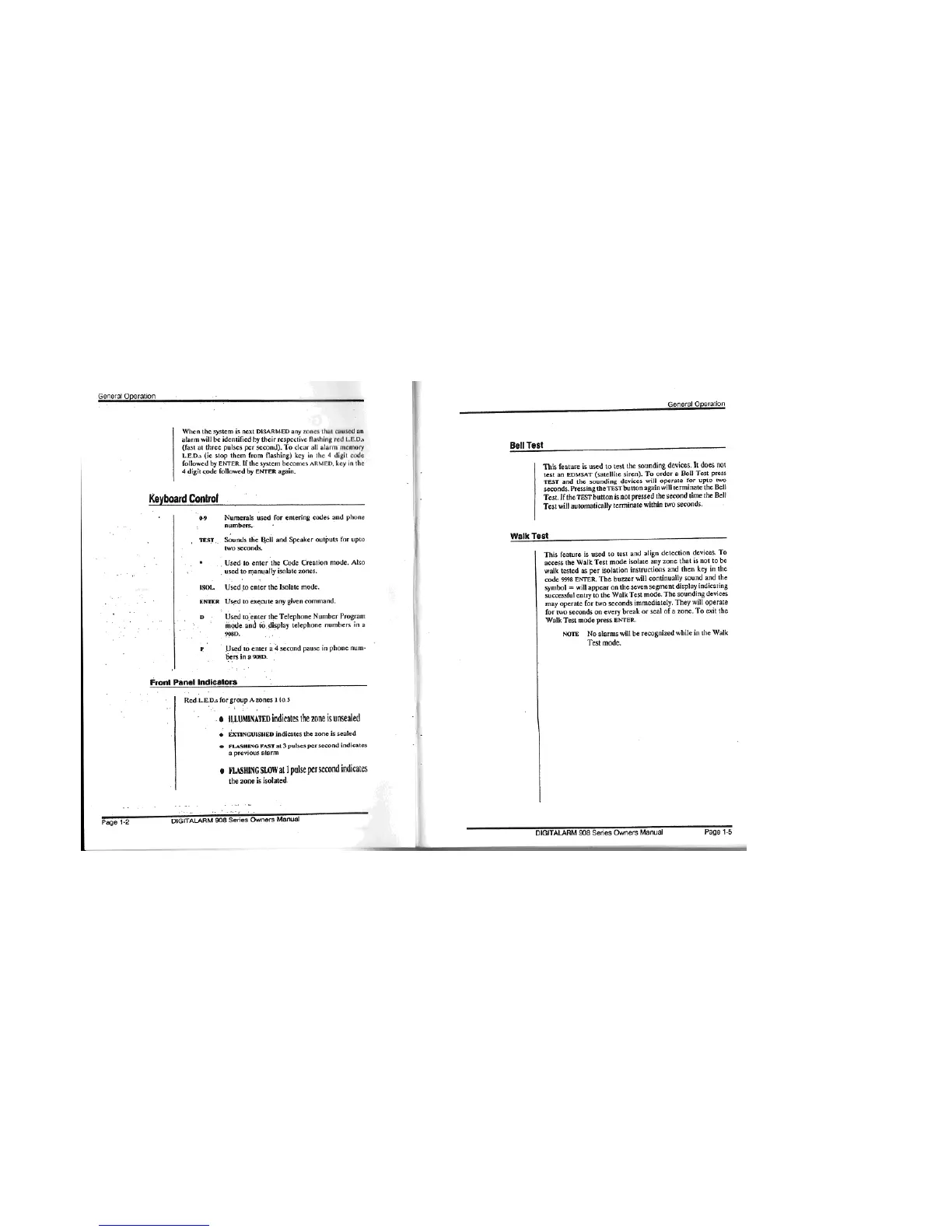 EDM Digitalarm 908 - Keyboard Control; Front Panel Indicators; Bell Test; Walk Test