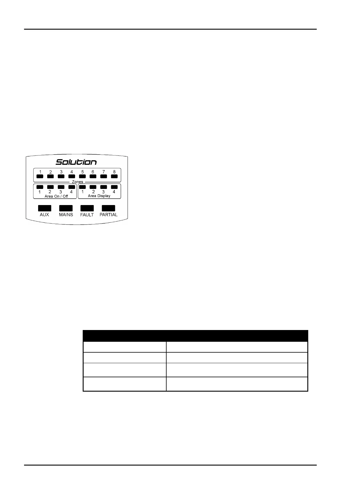 The ZONE indicators are used to display the status of the zones. The following table lists the various