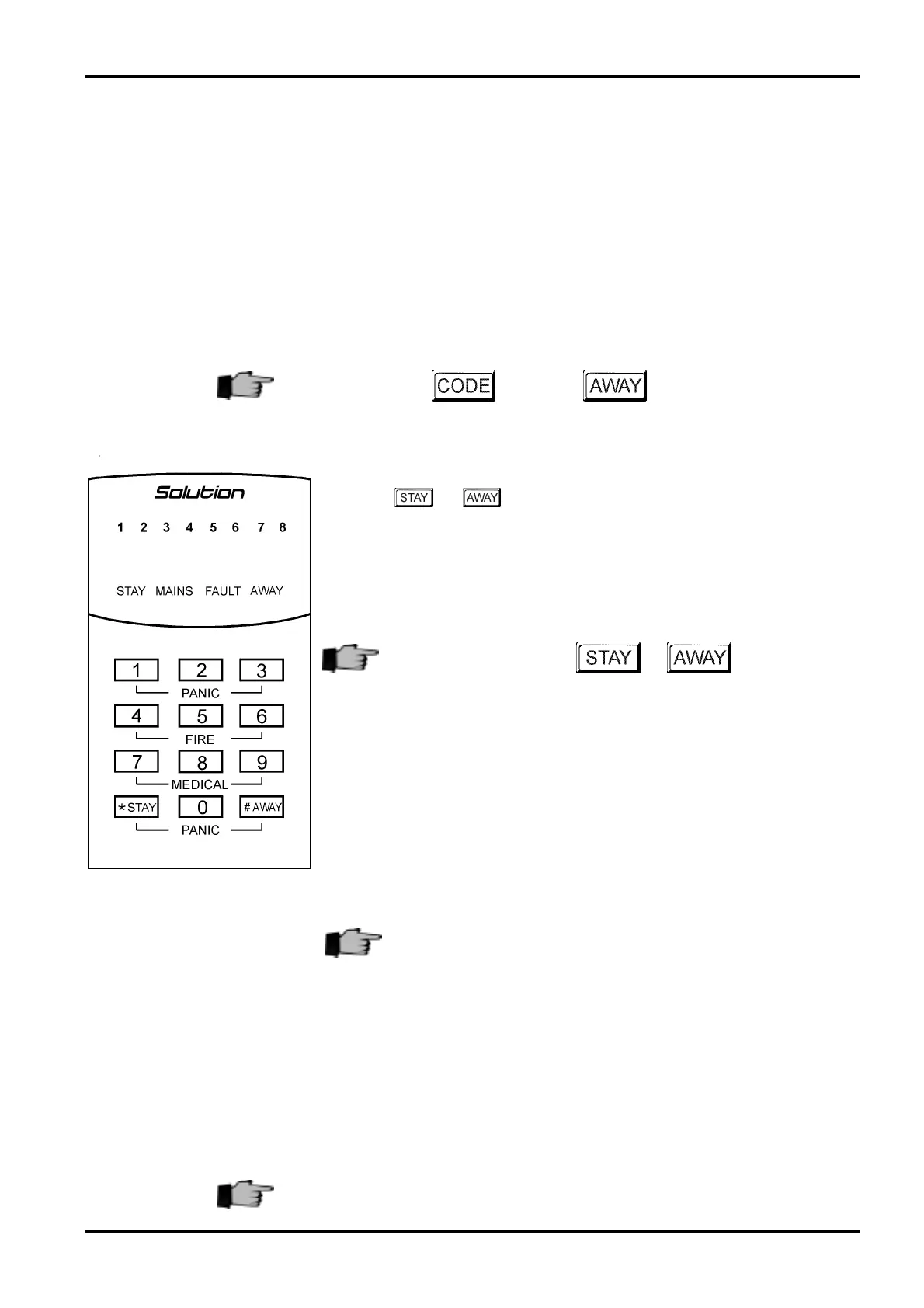 An audible codepad fire alarm will be activated when both the 4and 6buttons on