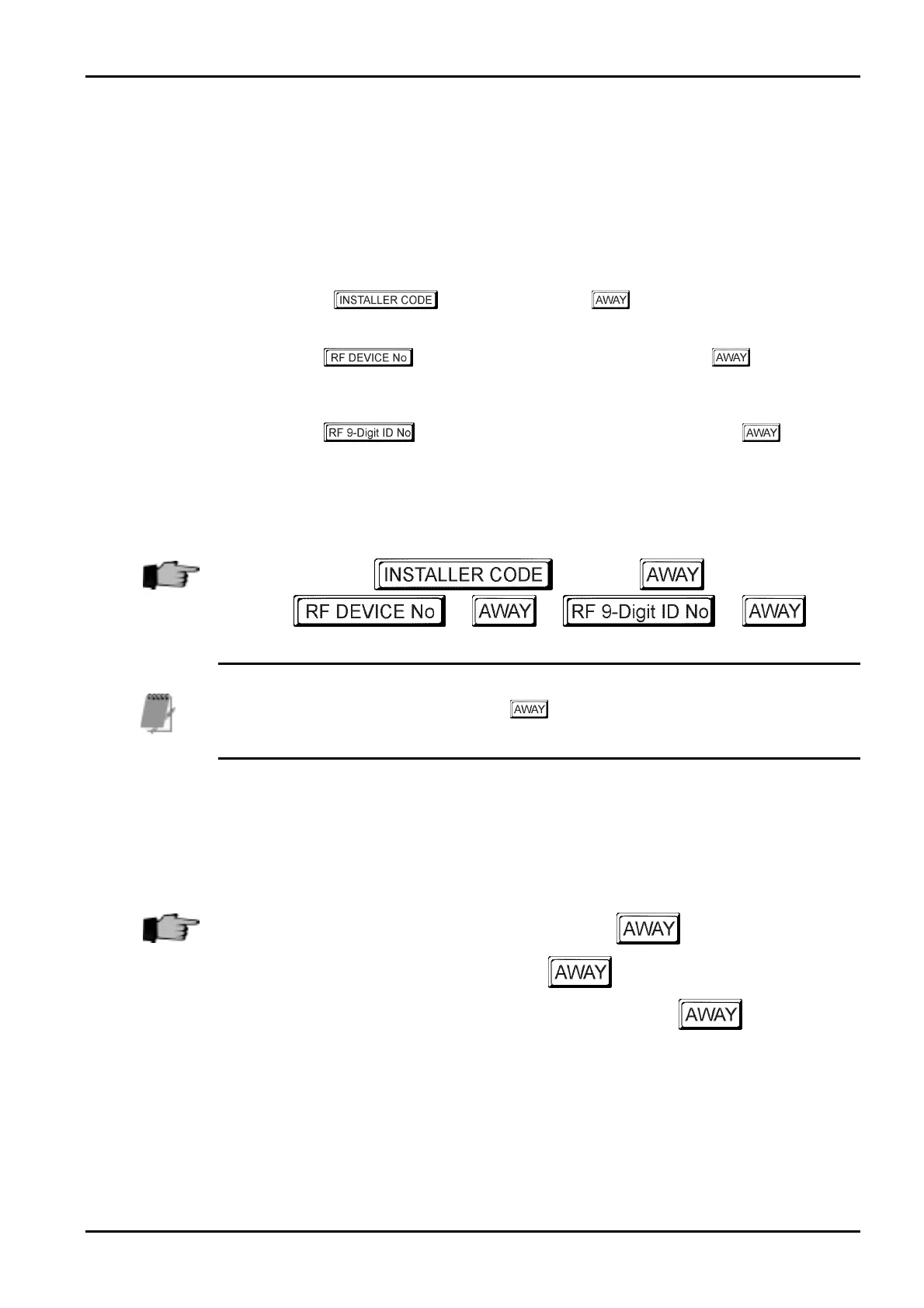 When adding RF devices, this function will automatically terminate if a button is not pressed