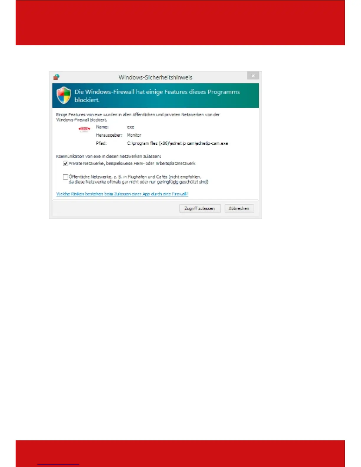 Then confirm the firewall message with "allow access".