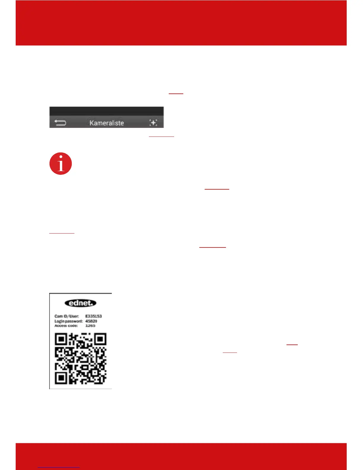 The camera ID and the access password as well as the QR code can be found on the enclosed