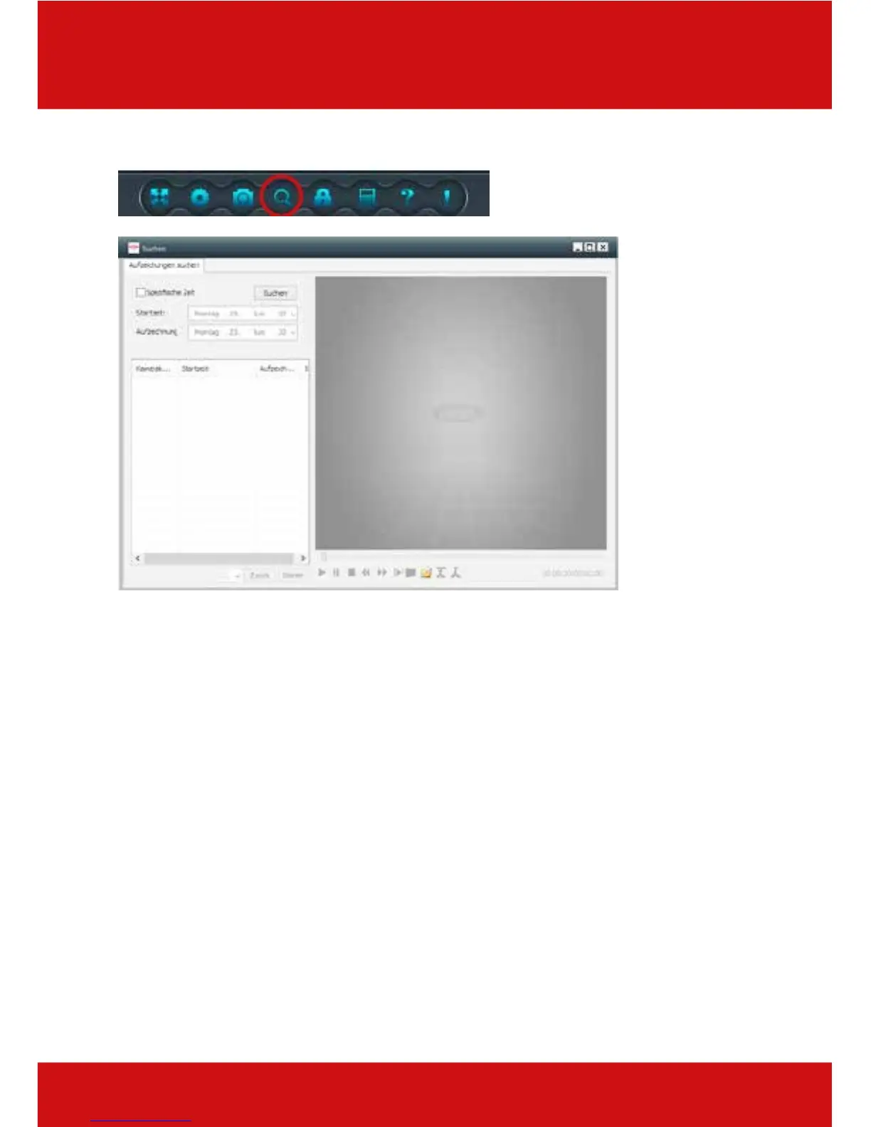 In the search menu you can search for camera recordings and play them back. To do this, click