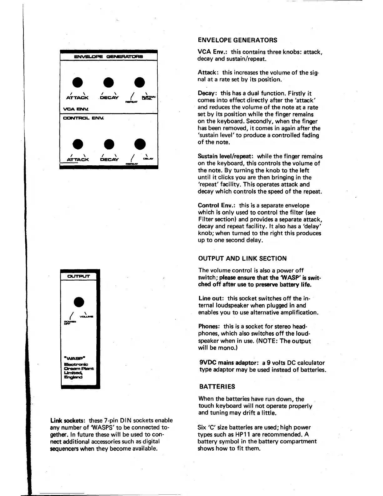 EDP Wasp - WASP Envelope Generators; VCA Envelope for Amplitude Control; Control Envelope for Parameter Modulation; WASP Output and Connectivity