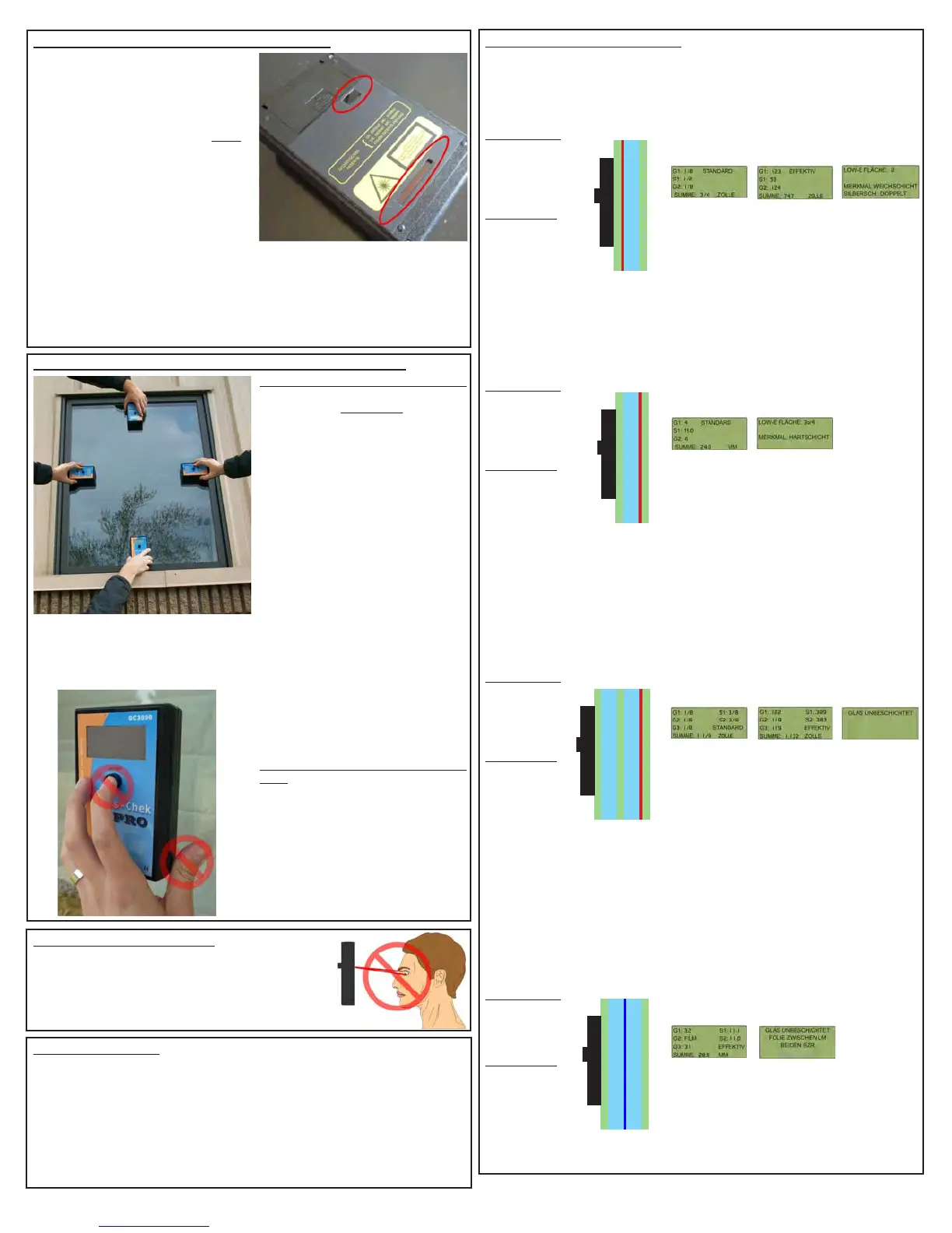 das Messgerät zeigt nur an, dass die zweite Glasschei-