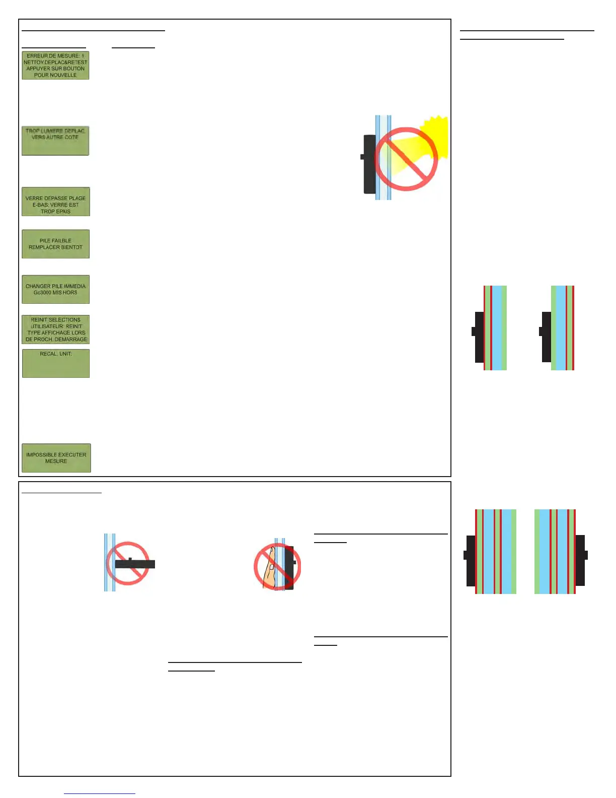 mauvais résultats d’épaisseur ou de revêtement à faible émissivité ou afcher un message d’erreur. La zone