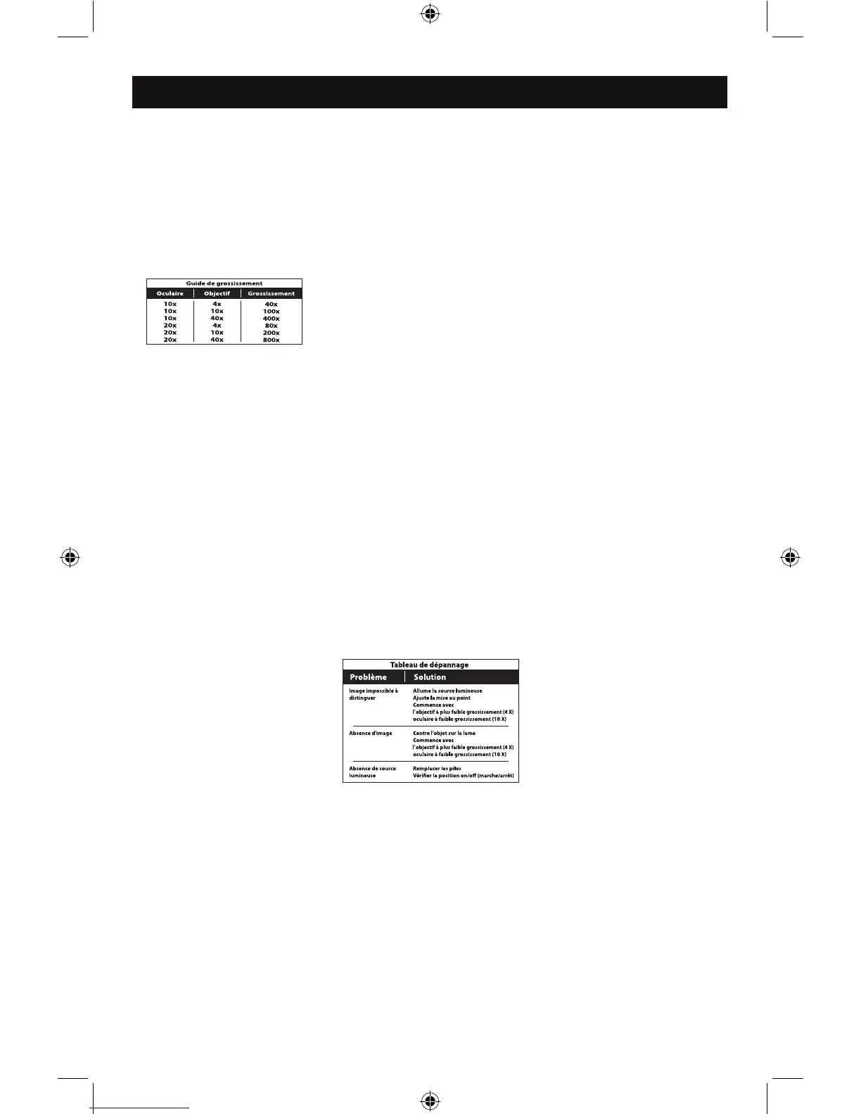 Les grossissements suivants doivent