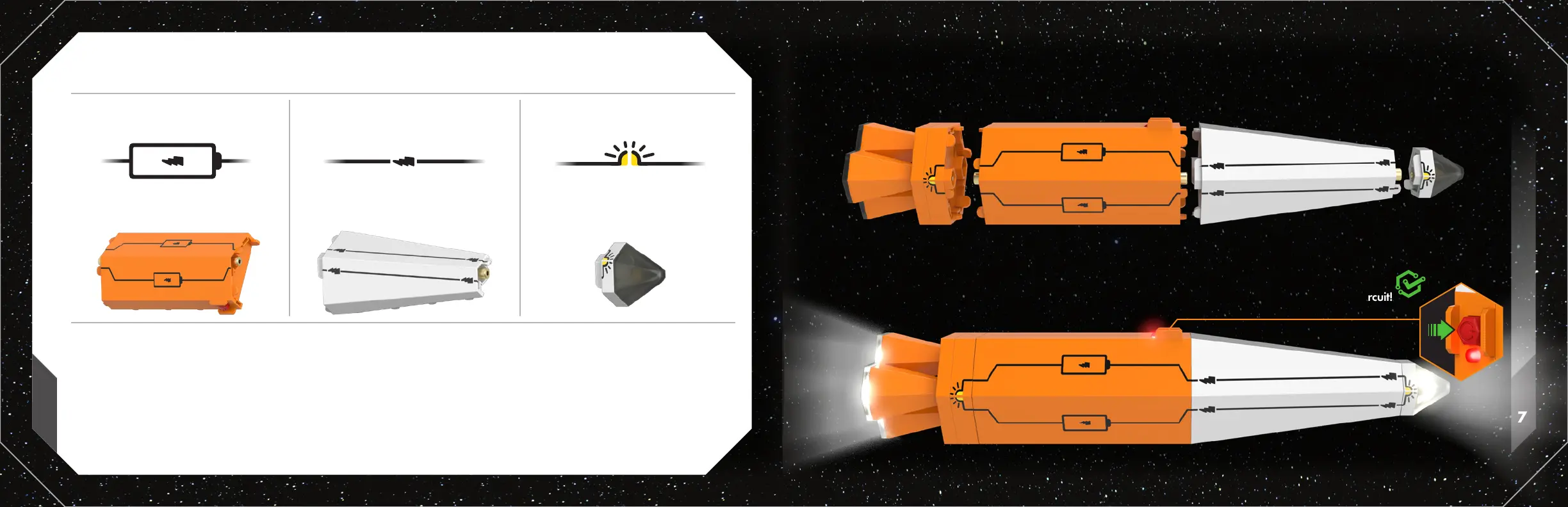 Line up the battery with a conductor and the effect. When connected, these are ready to become a closed circuit.