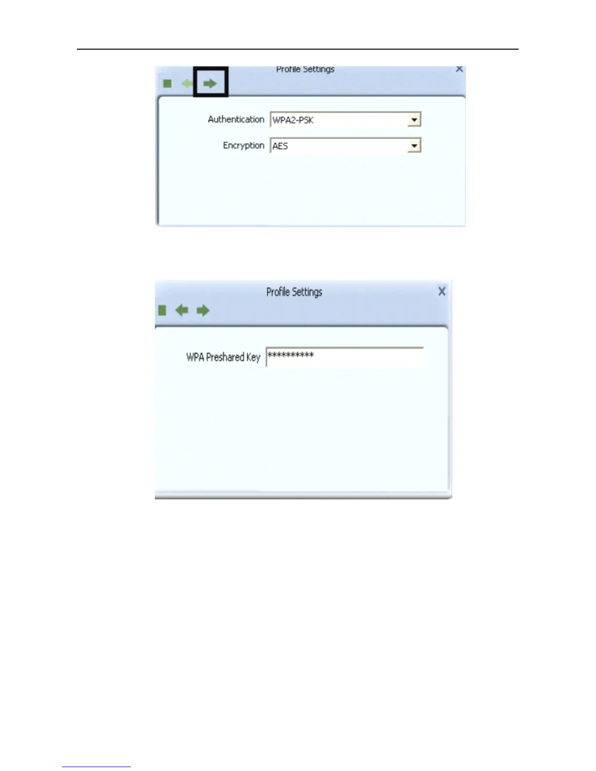 used by the AP or wireless router to which you are connecting. Click the right arrow to save your