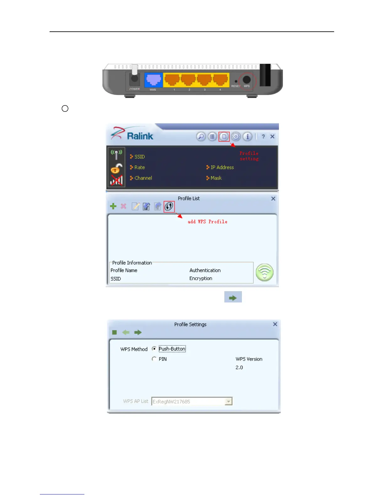 a. Start-up Ralink Utility ,click the “ Profile setting ” icon and then select ” add WPS Profile ” button.