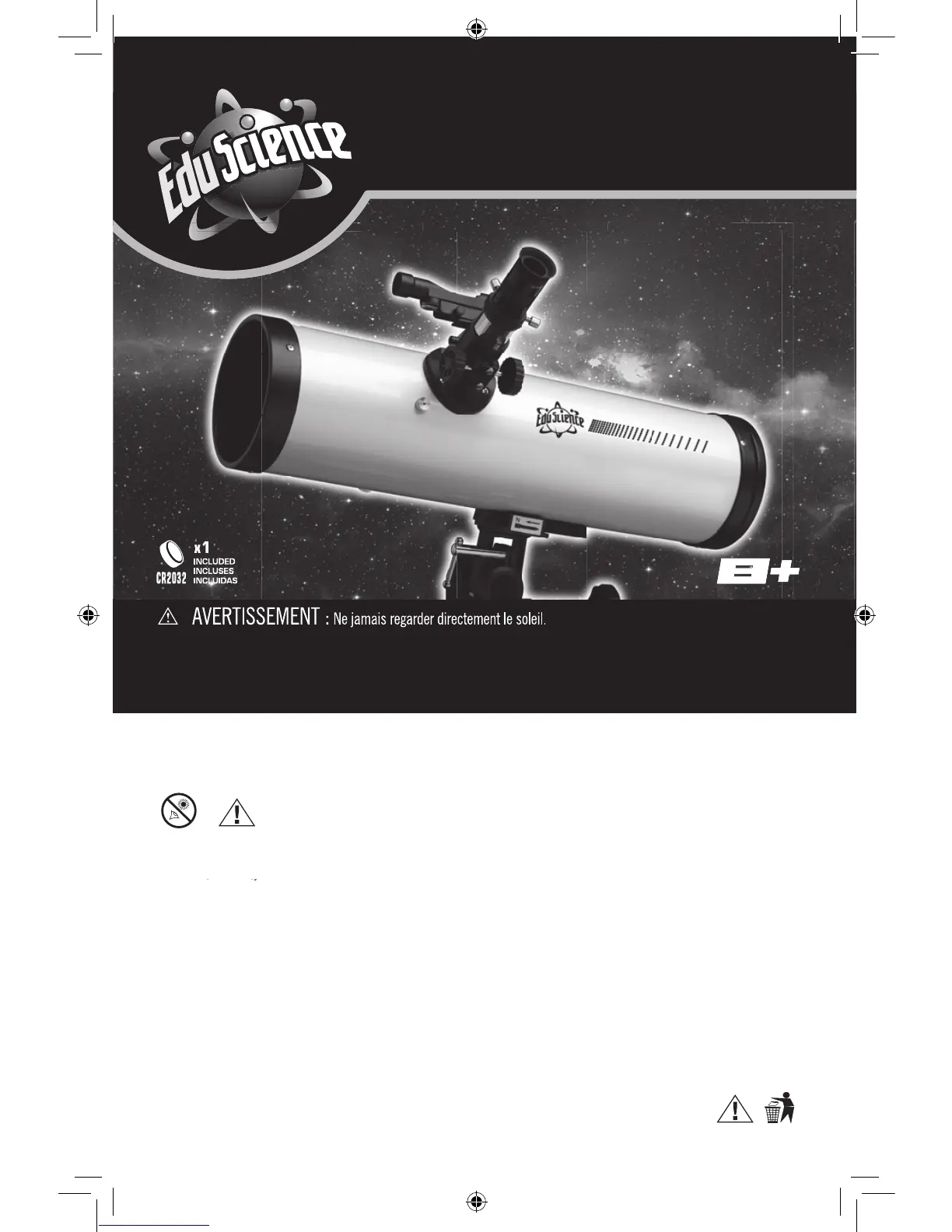 Ne jamais observer le soleil avec ce télescope ! Garder cela à l’esprit tout particulièrement lorsque le télescope est
