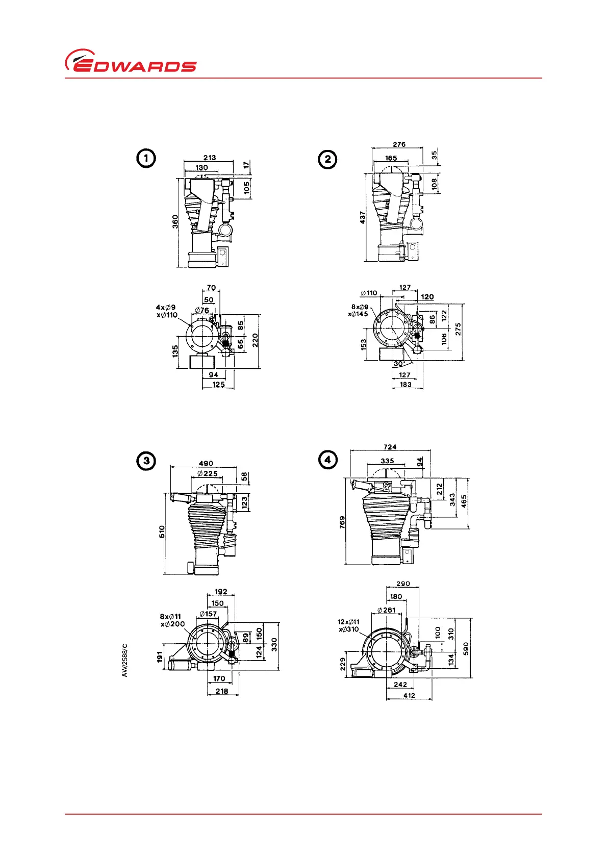 Edwards Diffstak 63/150 - Dimensions of P-Model Diffstak Pumps (MM)