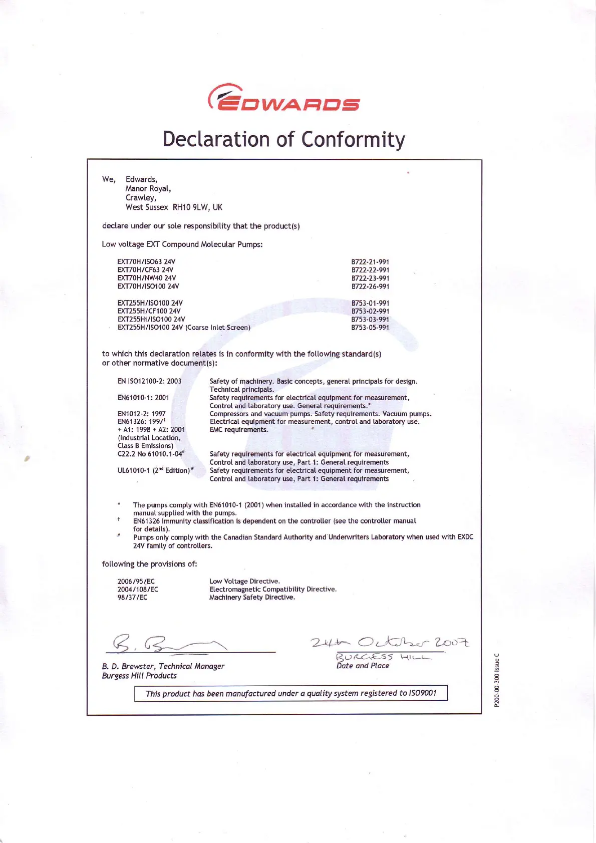 EN61326: 199y' Etectricat equiprnent for rn€asurernent, conuot and laboratory use.