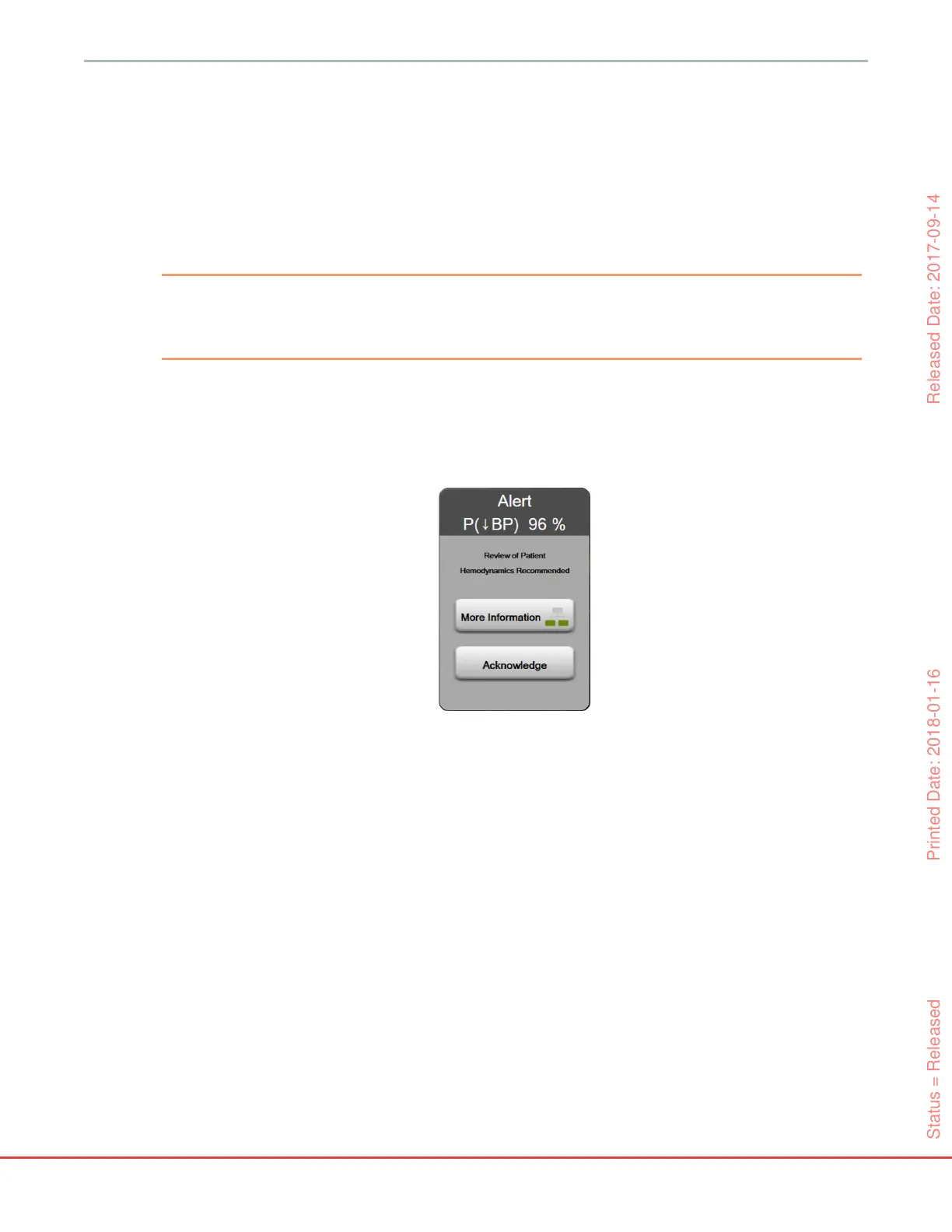 popup without reviewing patient hemodynamics on the HPI secondary screen, touch the Acknowledge