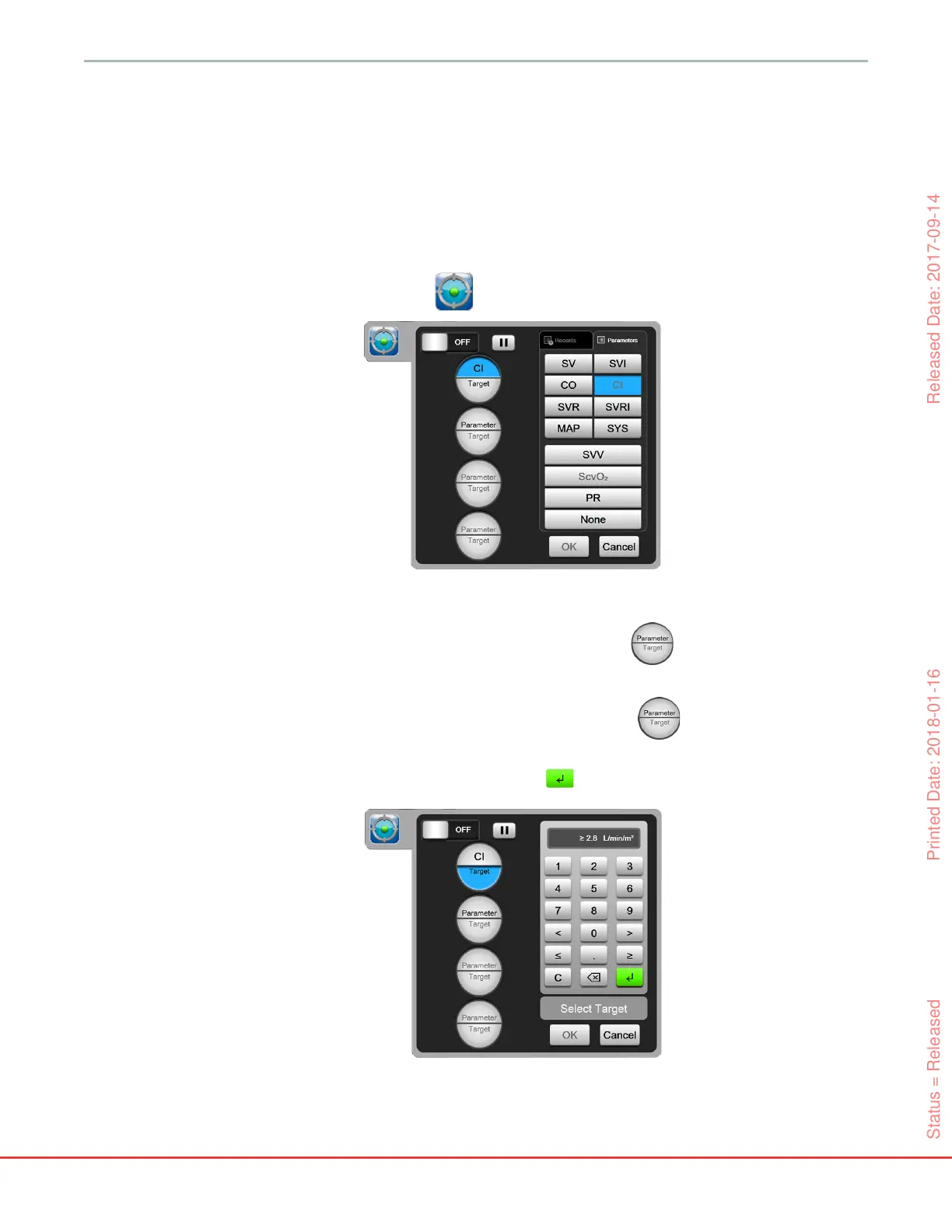 2 Touch the upper half of a Parameter/Target selection icon and choose the desired