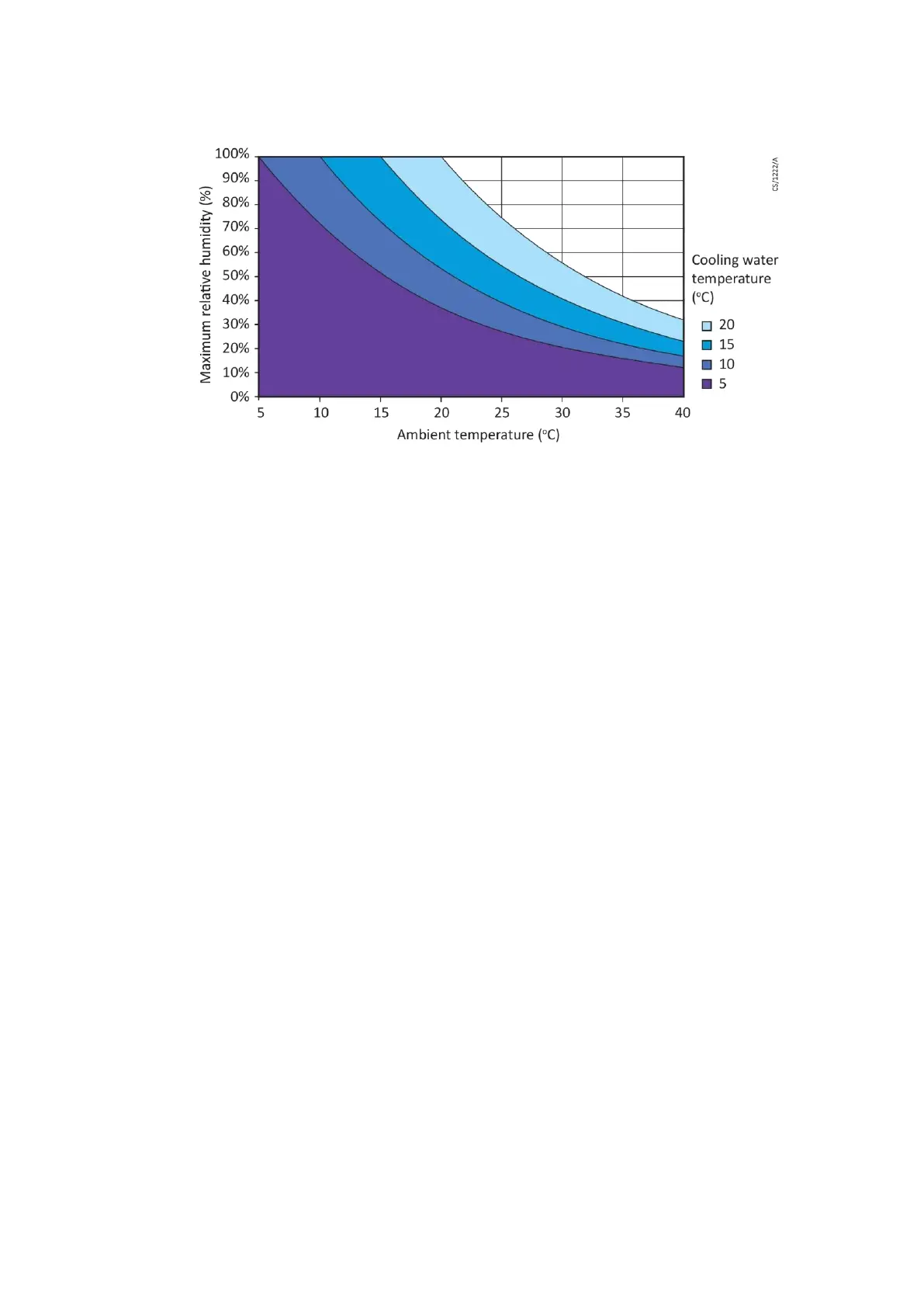 Figure 9 Maximum relative humidity to avoid condensation with water cooling