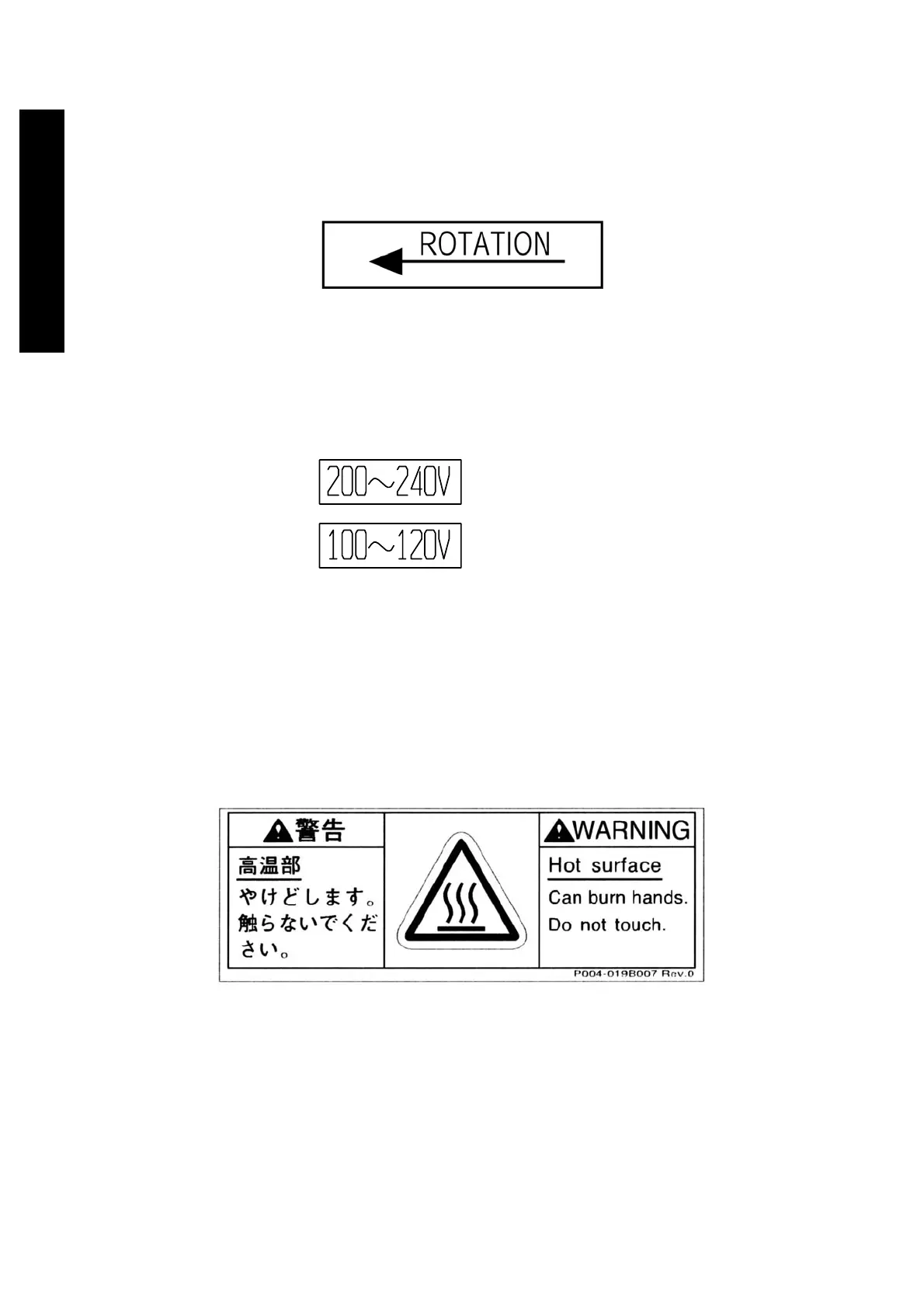 This label instructs operators so as not to touch the hot surface of the STP pump.
